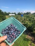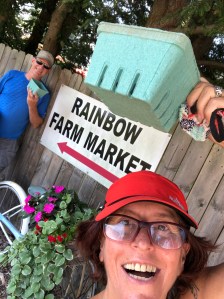 We decided to spend a night at a Harvest Host Spot. My colleagues bought me a bunch of memberships for my retirement travels, Harvest Host was one of them. These are farms or wineries or breweries or museums where you can stay on the property for free. I called Rainbow Farms to see if they had a spot for us and the did. It was amazing!! They had a store where we purchased a few veggies, one of the being flat white beans. I’ve seen these before in green but never white. I made them with tomatoes, garlic and parsley. They were delicious. We also picked our own blueberries and made blueberry pancakes. We parked the van down by their pond among the blackberry bushes. At 6:00, the market closed and we had the whole place to ourselves. It was peaceful and serene especially at sunset when the bird speakers turned off. They piped in hawk bird noises over these super loud speakers to keep the birds from eating all the berries.