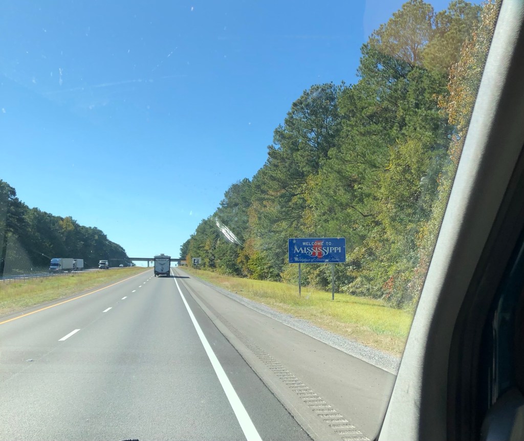 November 3, 2020 Headed out of Payne Lake this morning. Headed toward Mississippi. We found a bunch of Casino’s on the Mississippi River in a town called Vicksburg. The first Casino parking lot was a little shady so we moved onto he next Casino, which I think was called the Riverview where we had their blue plate special for dinner. It was amazing southern cooking all for 10 bucks. We both broke even on a little bit of gambling plus we got to “camp” for free in their lot so that’s a win. The Mississippi River is pretty cool with the barges that go by. This one tugboat was pushing 28 barges. Thats crazy!!