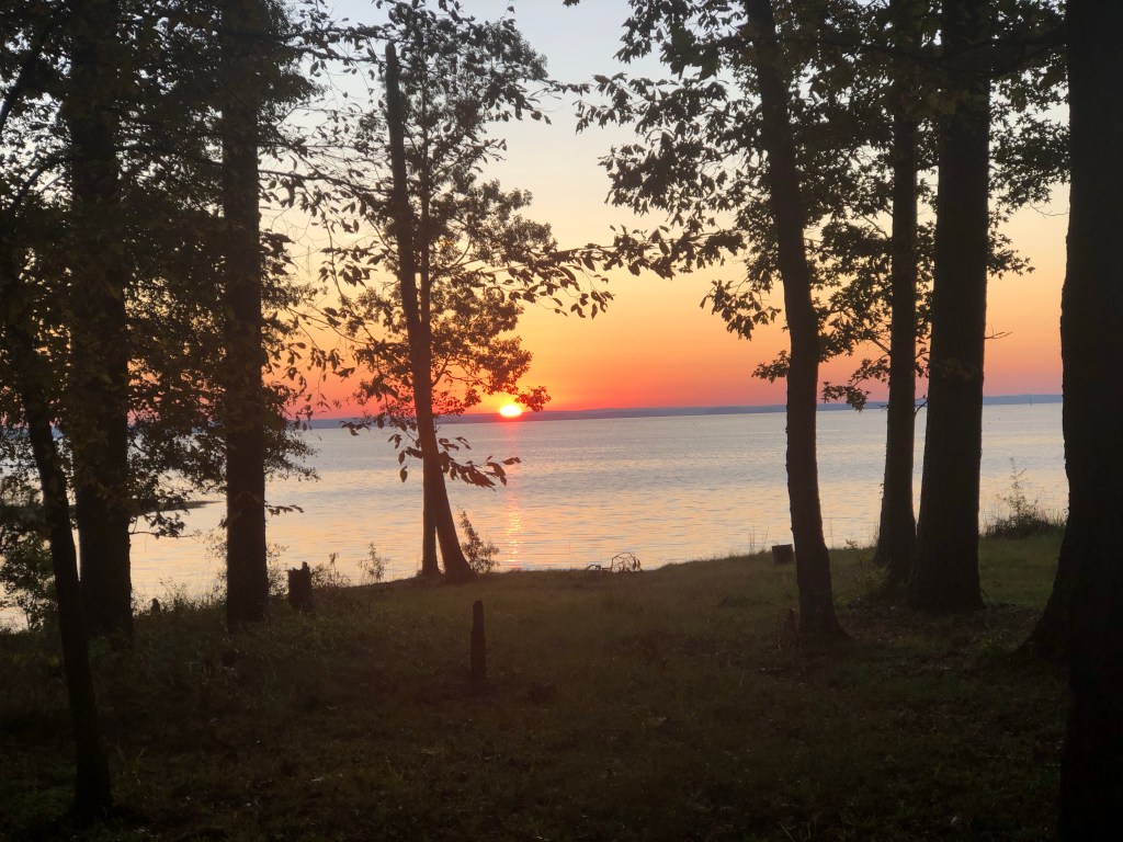 Check out at the campground was 11 AM so off we went for another 3 Hour Drive. We headed towards Texas and were looking to stop at Sabine National Forest where they have dispersed camping. We plan on doing a lot of camping in these national forest type of places but we don’t have that much experience with it except for what we’ve watched on YouTube. So we travel down a dirt road for a few miles and when we got to the turn off to what we thought would be the camping area there was a gate across it saying it was closed so we continued on in search of a pull off or something along the way that we could park at and camp for the night but we did not have any luck. We Managed our way back into the town and stopped and decided to look into a different place which was in the same national forest but a little bit further south called Indian Mounds recreation area this has four camping loops three of the camping loops were closed but one was open and we got super lucky to get a beautiful spot right by the water over looking Louisiana on the other side. So now here we are in Texas at this beautiful spot and there’s no charge for camping here it’s completely free with a 28 day limit.