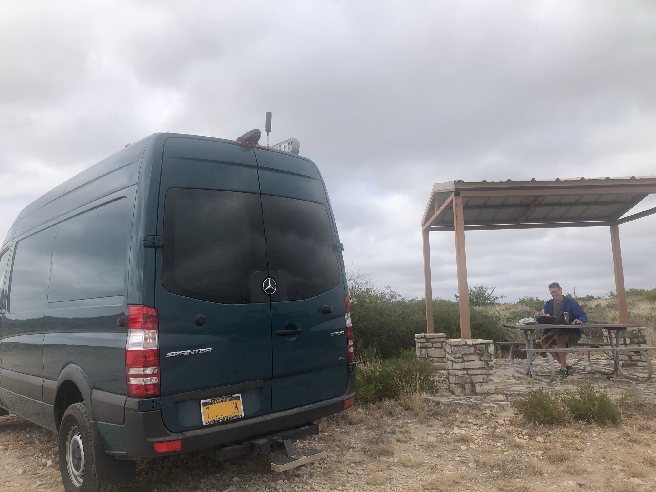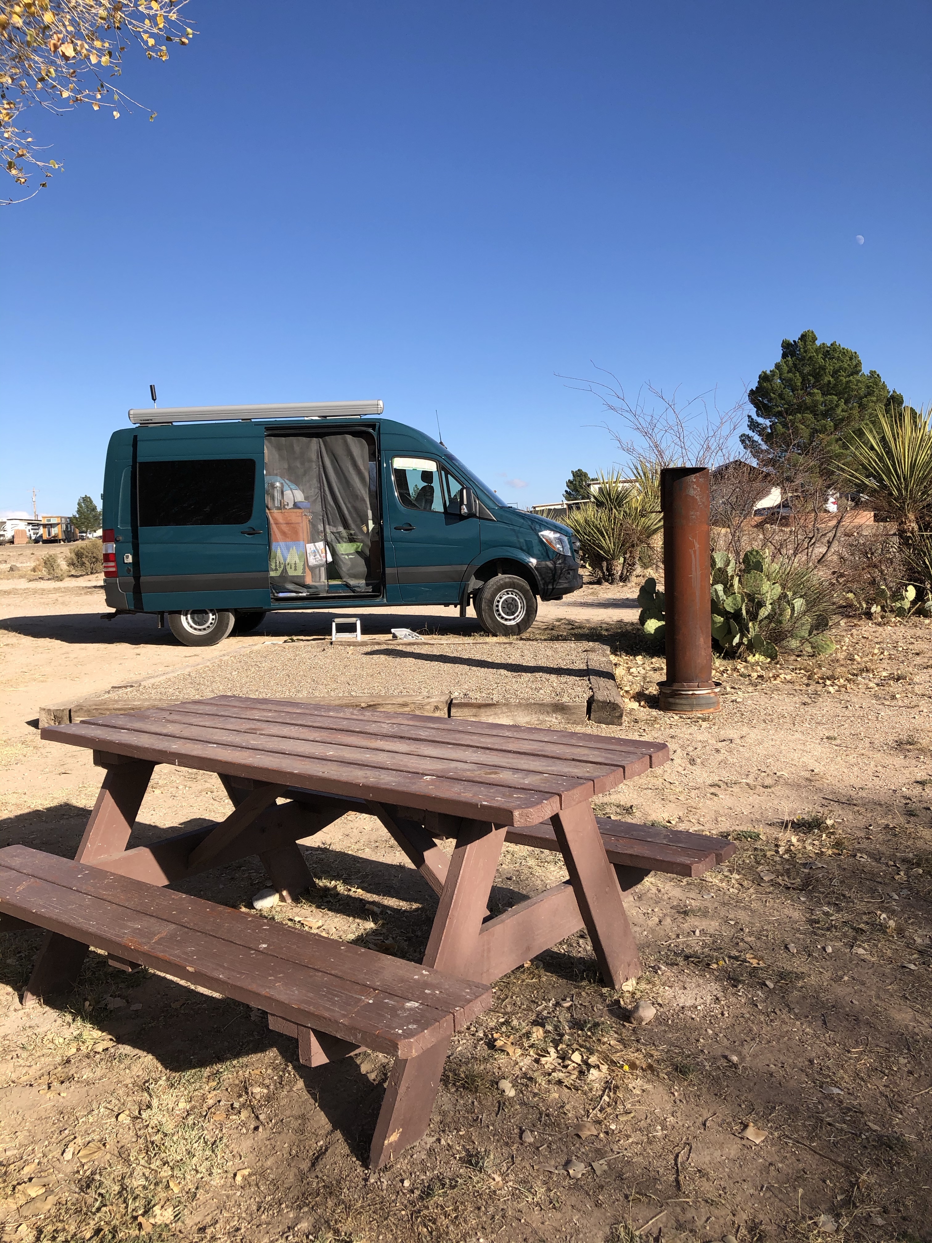 When we arrived at the Marfa light viewing area, there was just us and one other car. But when the sun was about to set, the place packed out with people coming to see the lights. We knew eventually they would all leave and we would have the whole place to ourselves for the overnight. And that’s exactly what happened. Unfortunately we saw no mysterious lights of any kind, but it was nice to wake up to a desolate parking area.