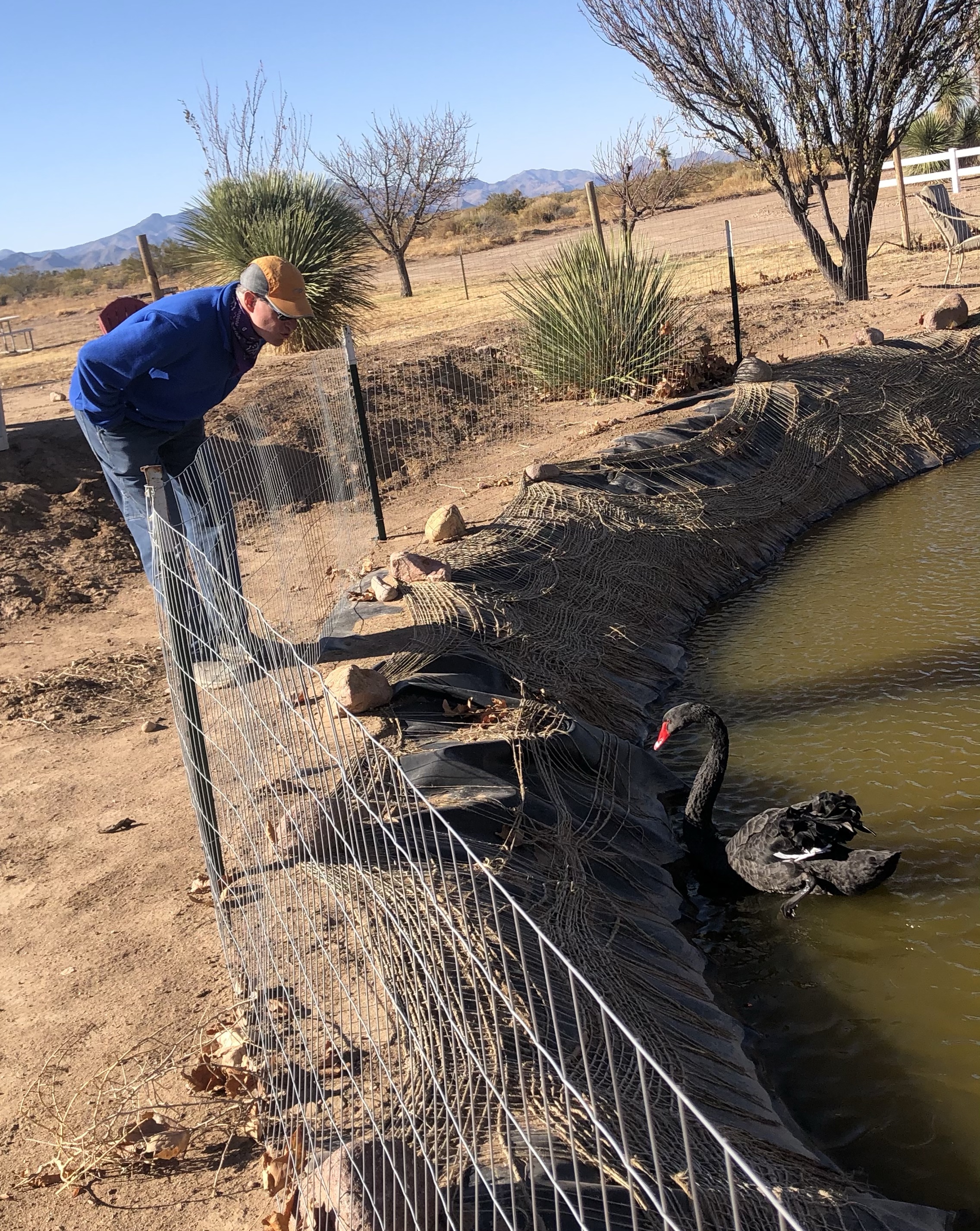 El Paso is on the border of New Mexico so we ventured west to Rustys RV Ranch. They were full!! Who would ever have thought that Thanksgiving weekend is such a big camping holiday? They did, however, offer us a “dry camping” spot for $17 which we immediately grabbed. This was an interesting Campground. So many birds. Perfect for us cause on the way we stopped at a Cabelas and bought a pair of pretty decent binoculars. This RV Ranch also had caged birds. Lots of different and colorful varieties plus a black swan which was so cool looking.
