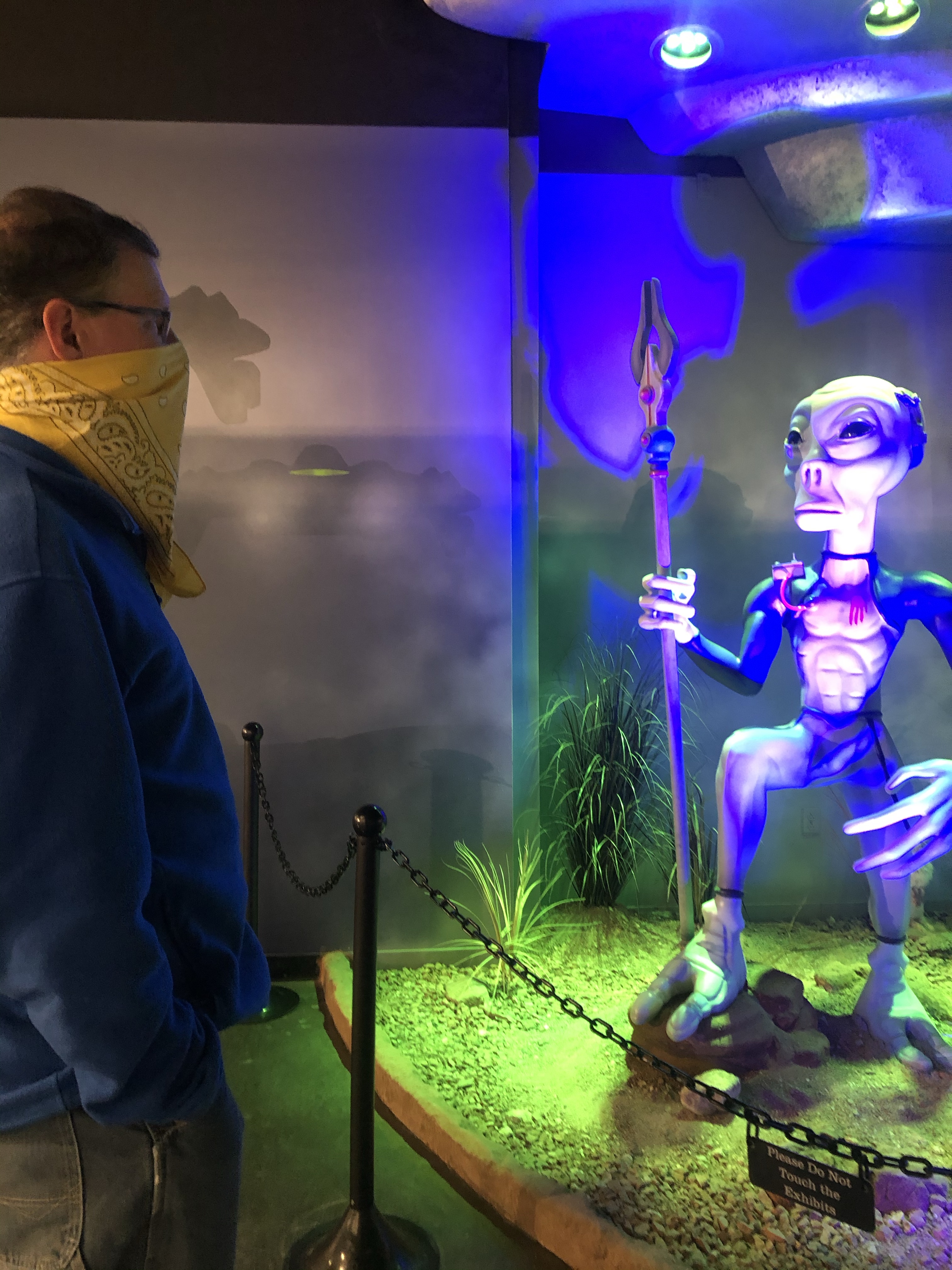 With the cold front hitting New Mexico, we thought it would be best to head to lower elevations and headed towards Tuscan. For hundreds of miles we kept seeing Billboards about “The Thing.” Very intriguing billboards that peaked our interest. There were so many of them that we had to stop at the attraction to see this “thing.” We walked through the GIANT gift shop towards the back where “the thing” was behind a wall. We paid our admission of $5 each and could hardly wait to see “the thing.” I thought maybe it was like an alien monkey. Or maybe some kind of reptile with fur. I could not wait to see it!!! I won’t show a photo of “the thing” cause I don’t want to ruin the surprise incase you are ever on Interstate 10 by the New Mexico/Arizona border.