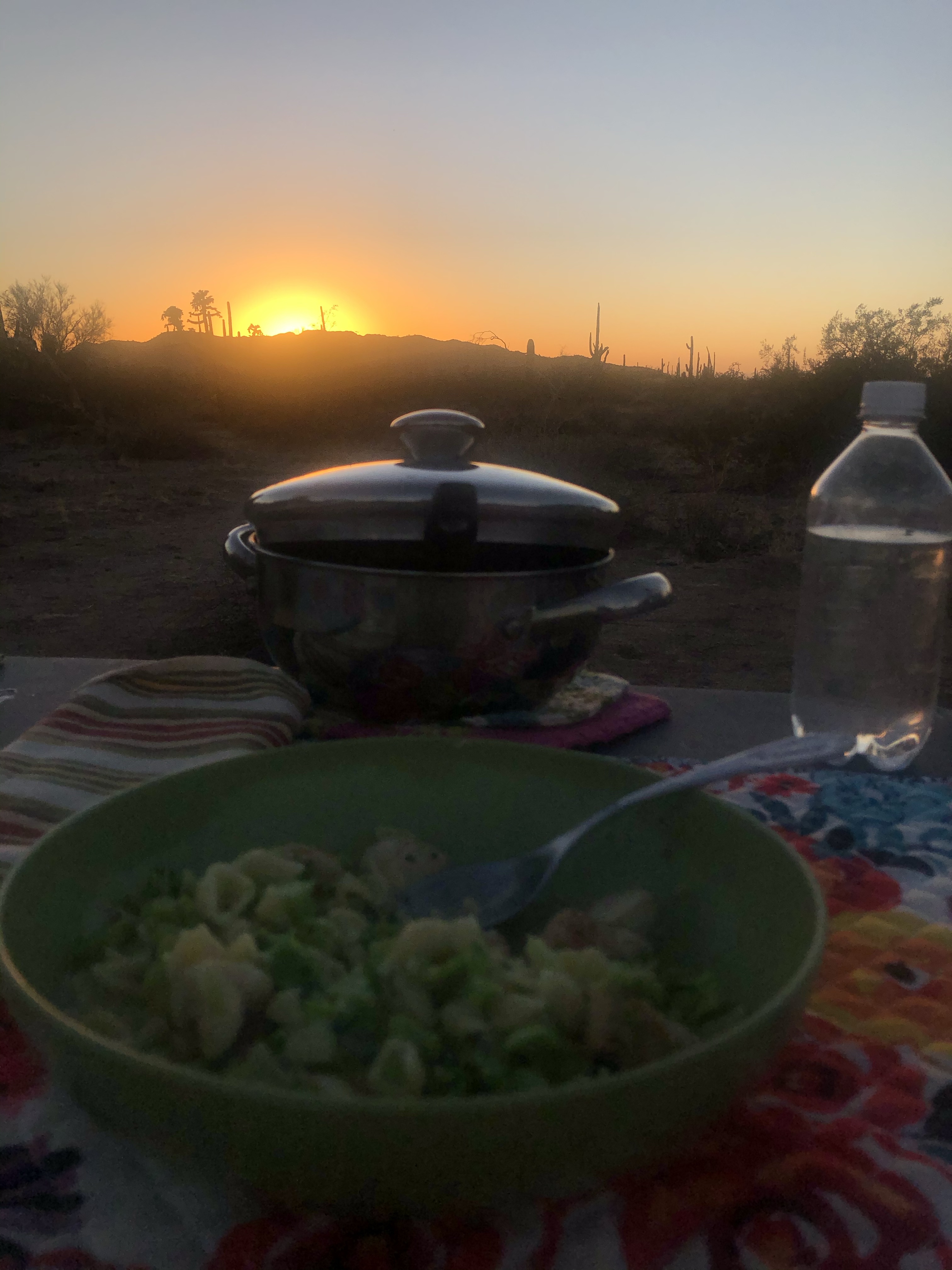 Once we got back to civilization we passed an rv park that looked like it wasn’t full so we pulled in and were able to get a “dry camping” spot for just 10 bucks. “Dry camping, for those that don’t know, is when you don’t connect to their electric or water supply or septic. It’s usually far away from the other RV’s or sometimes closer to the bathrooms. It really depends on the campground. This particular place was basically a dirt parking lot but the sunset and sunrise were magnificent.