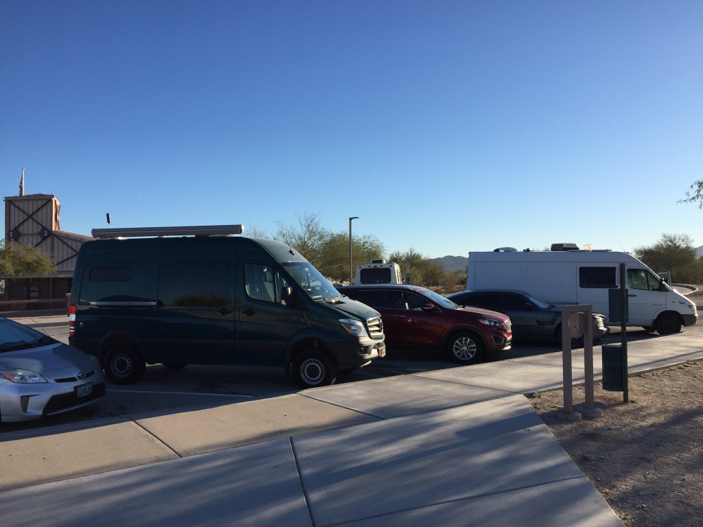 Oh Boy. Phoenix was a disaster!! The traffic was horrendous and they didn’t have our fuse or wires. And on top of that they have a real homeless problem which meant so many rules about where we can spend the night. We got a knock on the window from the casino security guard informing us that we could not park there. Which makes no sense since the casino is open 24 hours and we had been in and out of it spending money at least 5 times. So we had to batten down the hatches and be on our way. There was a LOVES travel stop that truckers stay at so we headed there. It was just a 5 minute drive. Once we got there we noticed a ton of “No overnight parking” signs. So strange for a LOVES but like I said, they are trying to get a handle on the amount of people wandering around that area causing trouble. So off we went another 40 minute drive to a rest stop on I-10. Beautiful rest stop with picnic tables and a bunch of other VanDwellers and car sleepers also. We set up the beds for the night and had a nice restful sleep and an uneventful morning.
