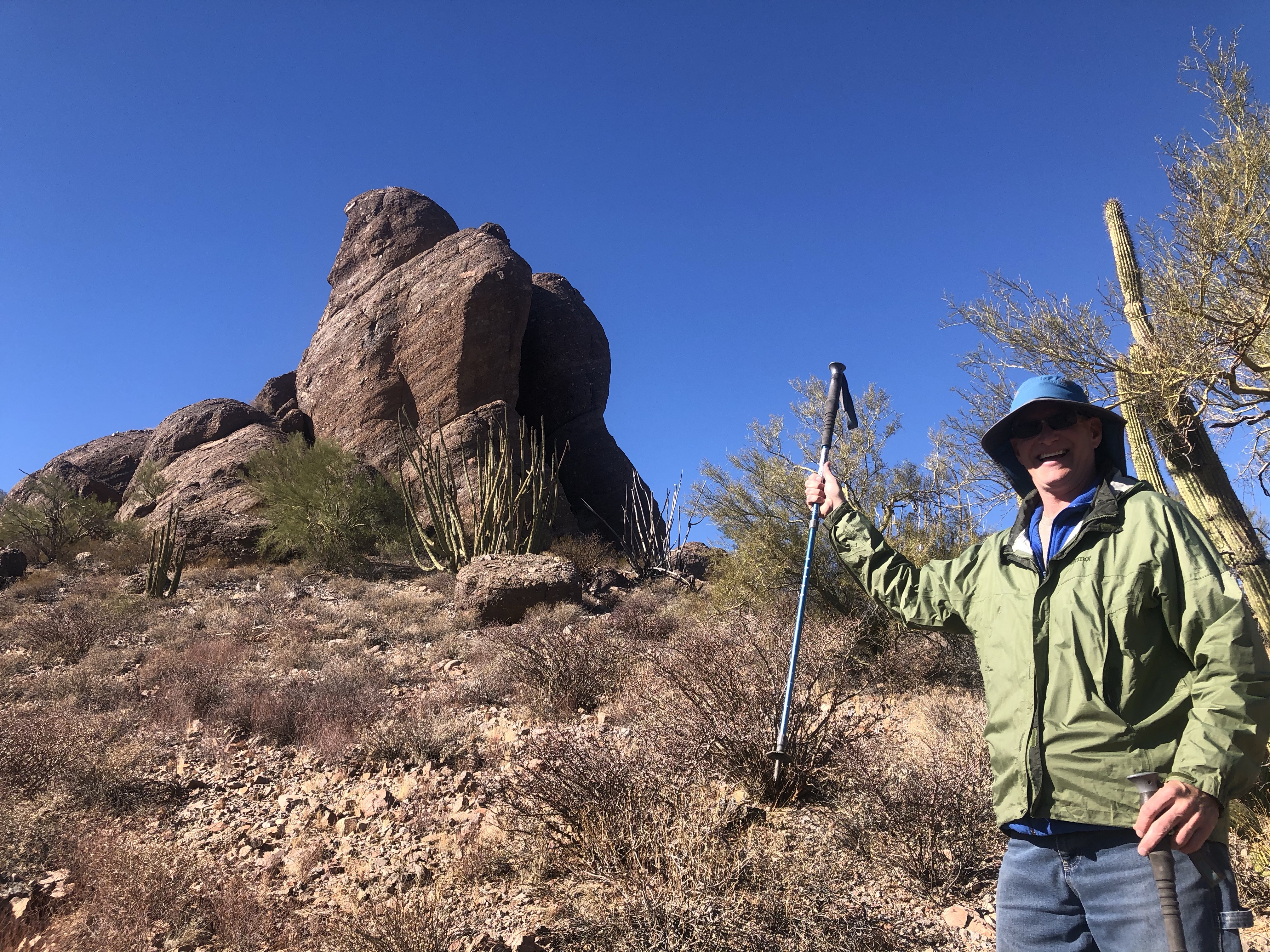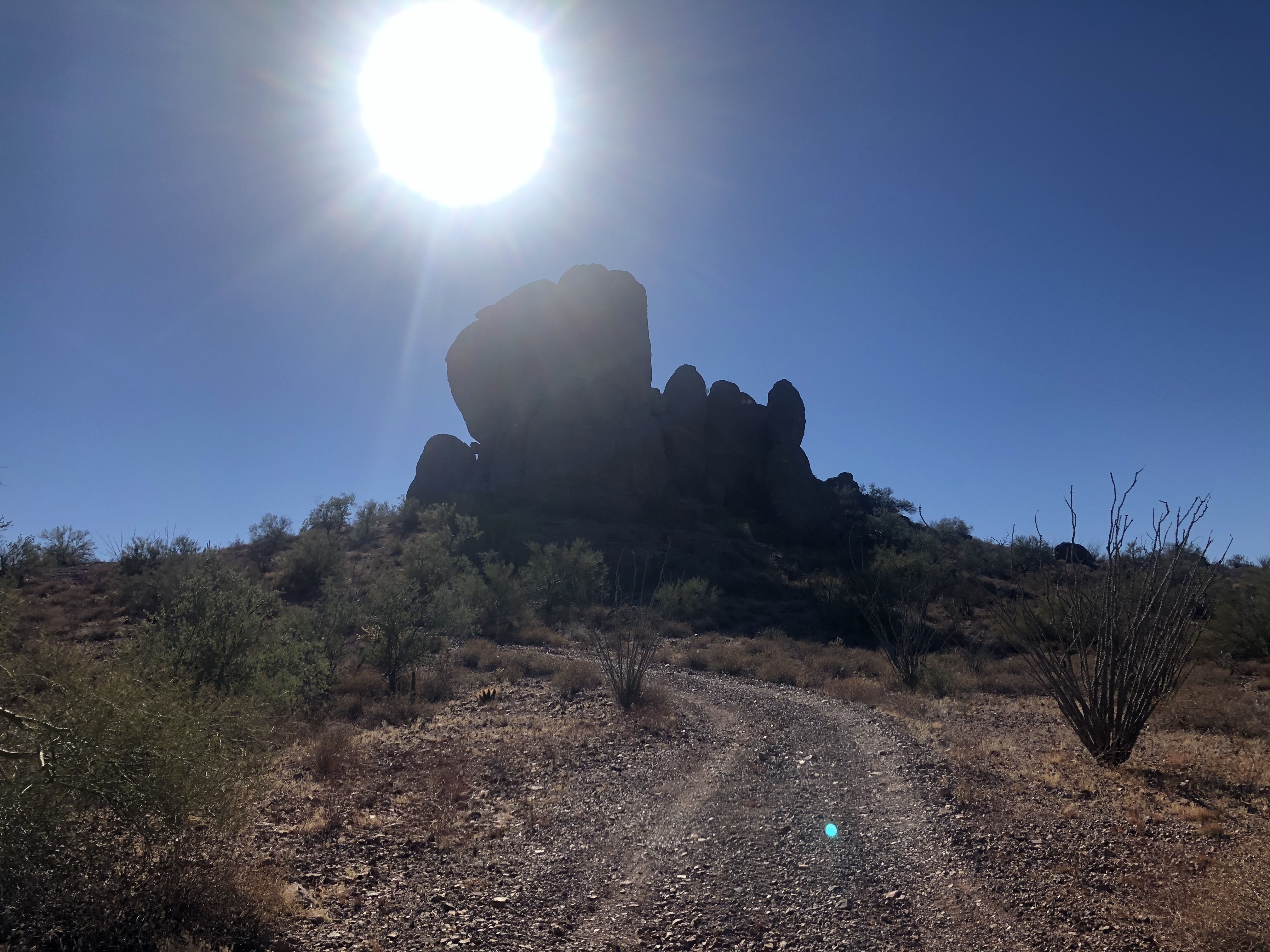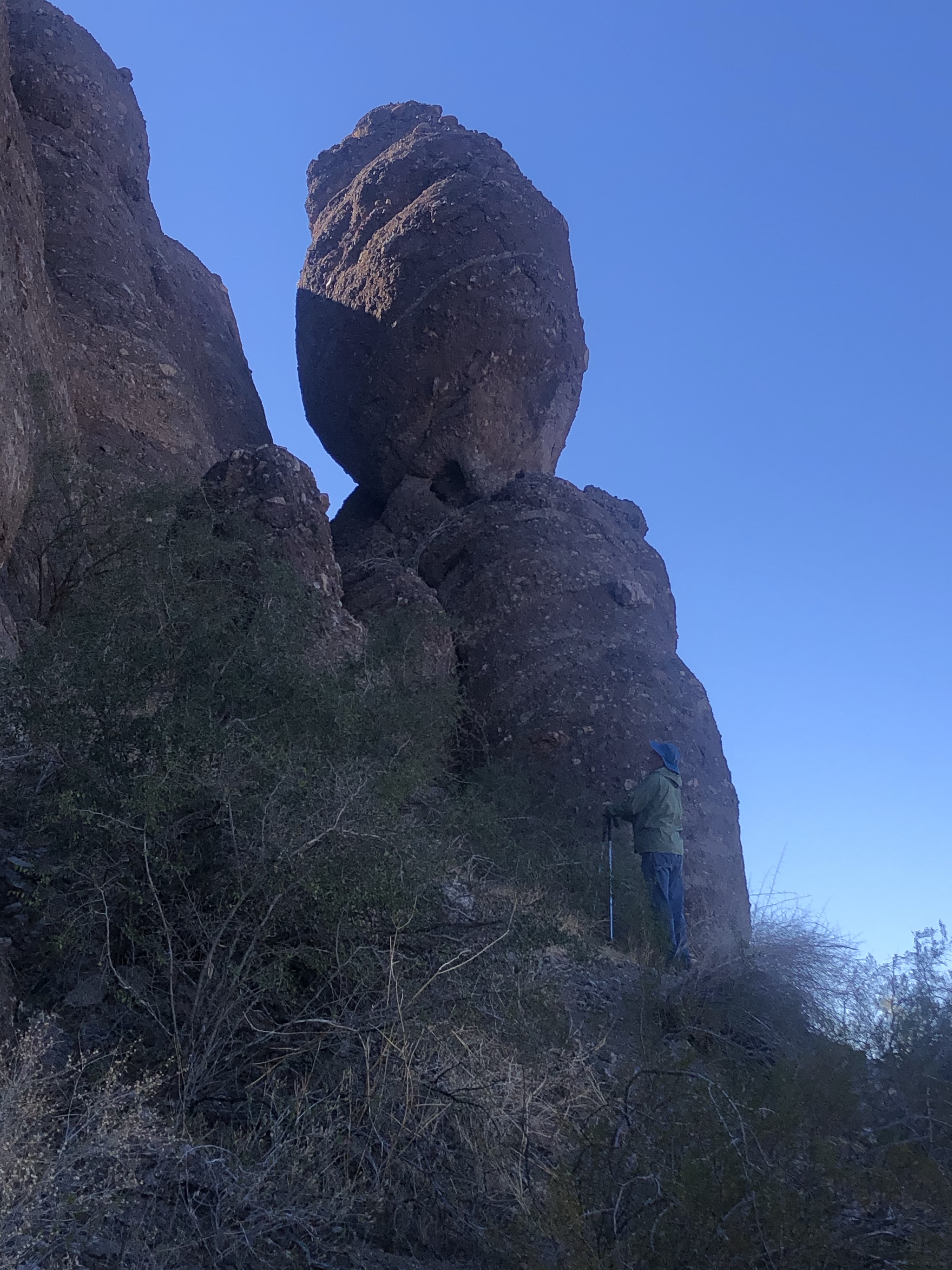 I find this part of the desert to be much greener than the other deserts we have been in. Also there’s cool rocks jutting out of the ground here. We hiked about a mile to checkout the Locomotive Rock off in the distance.