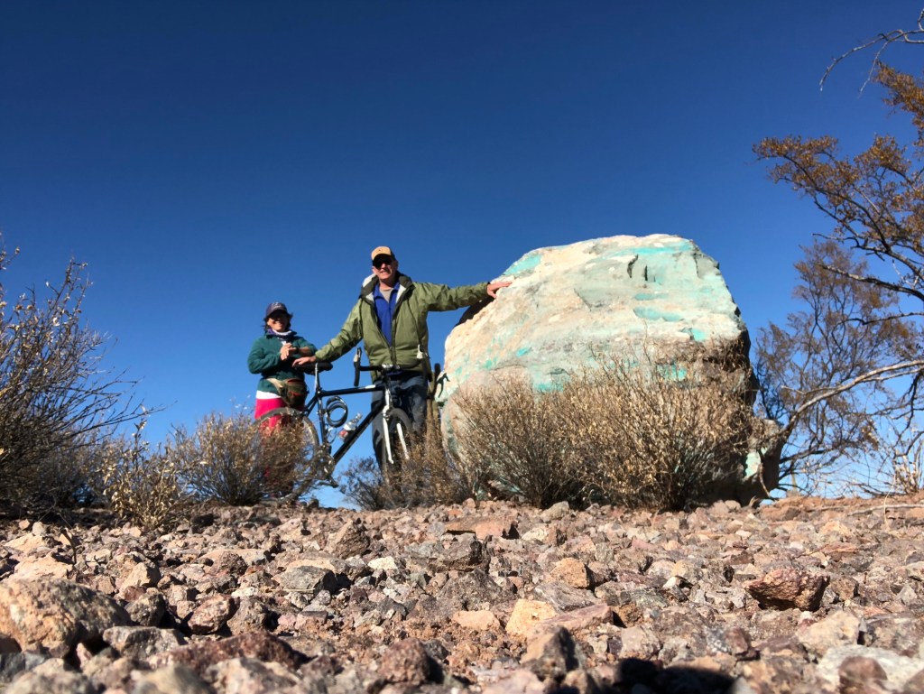 Next day we took a bike ride around the area. There are lots of loop trails on these forest roads. We finally saw some wildlife. A ground squirrel scampered across the trail. They are the size of chipmunks but with a poofy squirrel tail. Along the trail were lots of mines. The mine for copper in this area. We found a big rock that looked like strands of copper throughout it.