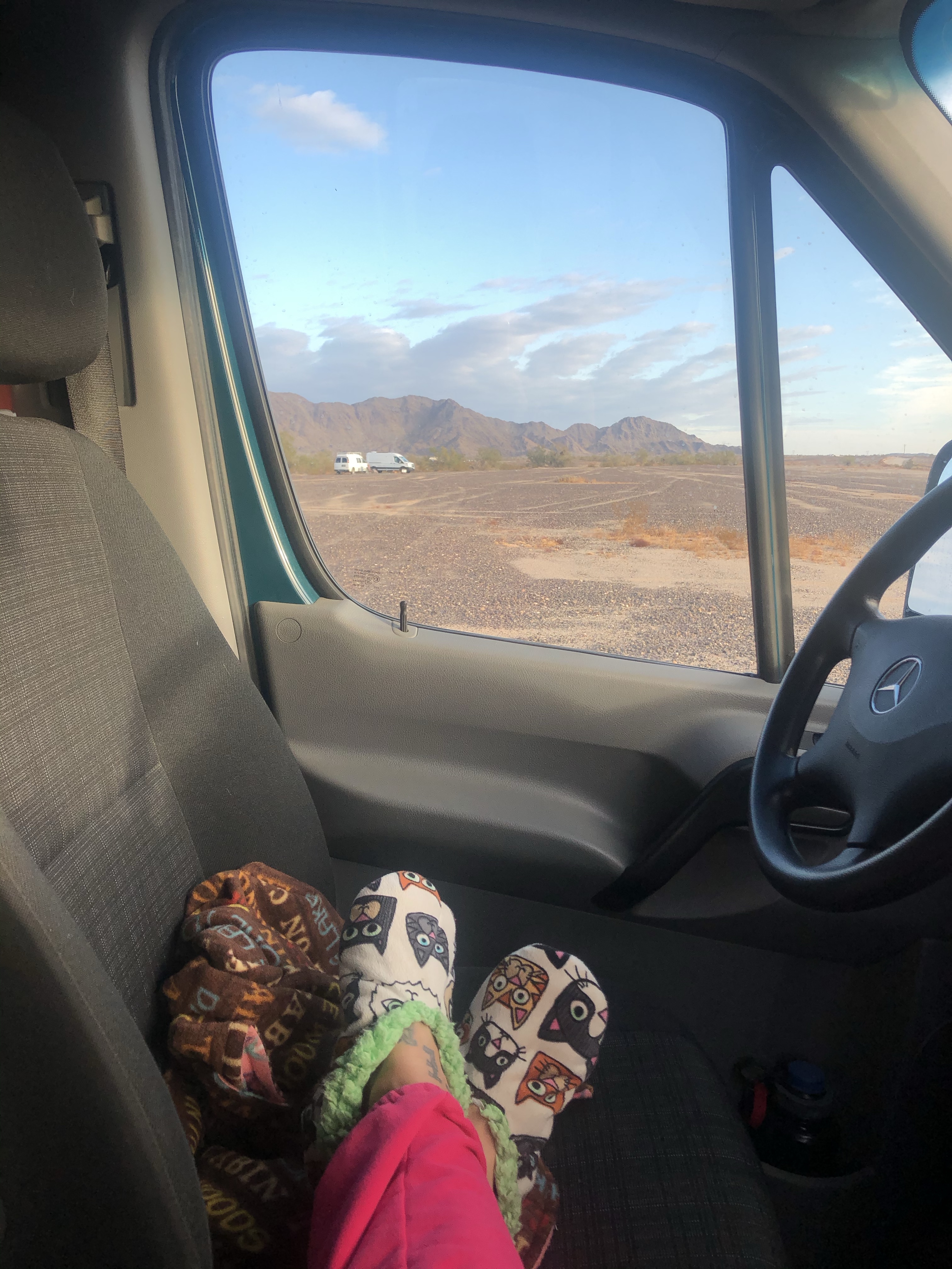 December 18- Today we head out of the desert again. Waking up to temperatures in the 30’s with no heat in the van is not what we had in mind. So today we head to Yuma which is lower elevation and about 10° warmer than here. I found a SUPERFANCY RV Resort on Passport America that we are going to try to get a spot for the night. I’m not gonna get my hopes up because they might not accept vans like ours or might be filled up.