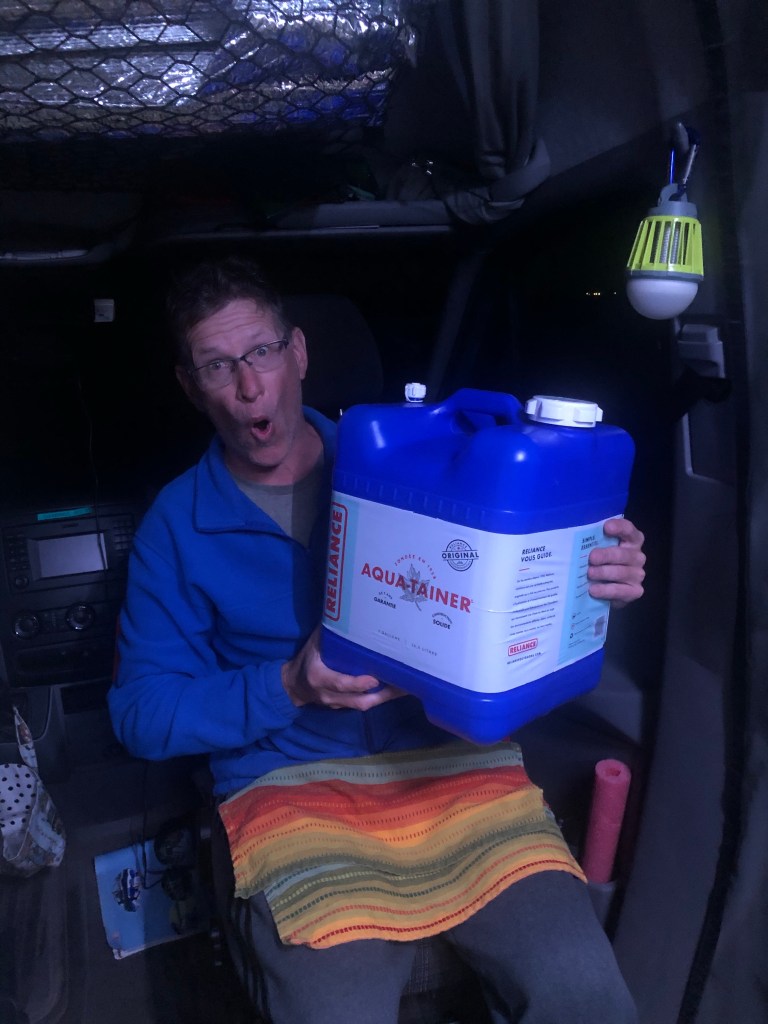 On Christmas Day, we awoke to yet another beautiful but chilly day. The RV Park staff was busy getting cooking Turkey pot pies for their Christmas feast which they were kind enough to invite us too. We declined as we are COVid Cautious and we don’t know these people or where they have been. So we loaded up on water and then headed back to the lake for a couple more days. Santa brought us this awesome 7 gallon water jug. He knew exactly what we needed.