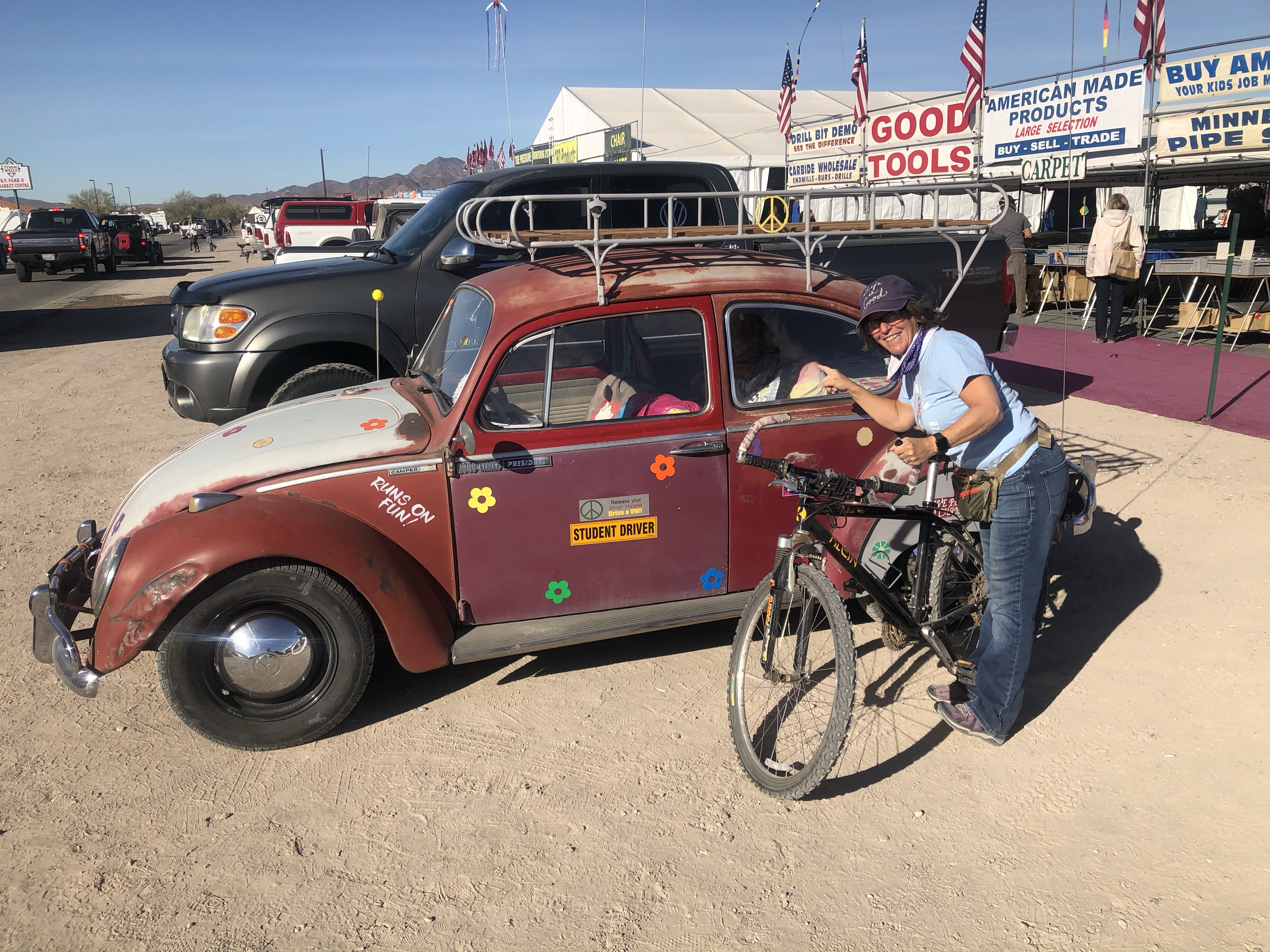 January 16……Opening Day of the Quartzsite Big Tent. This is the moment we were waiting for and the reason why we were spending so much time in Arizona, besides the 72° weather of course. We road our bikes there because we heard the traffic for the Big Tent Event can be brutal. And we heard right. So glad we took the bikes. The big tent was everything we thought it would be and what we have watched on various YouTube channels. Basically a bunch of carnival barkers trying to get you to buy their mop or pan or electric bike. We basically need nothing but we did get suckered into buying some eyeglass defogger goop. It works amazing and in this world of masks and fogged glasses, it was something we will totally use. We also enjoyed the buttery corn in a cup and the key lime pie on a pop. All in all it was a great experience and I’m glad we went.