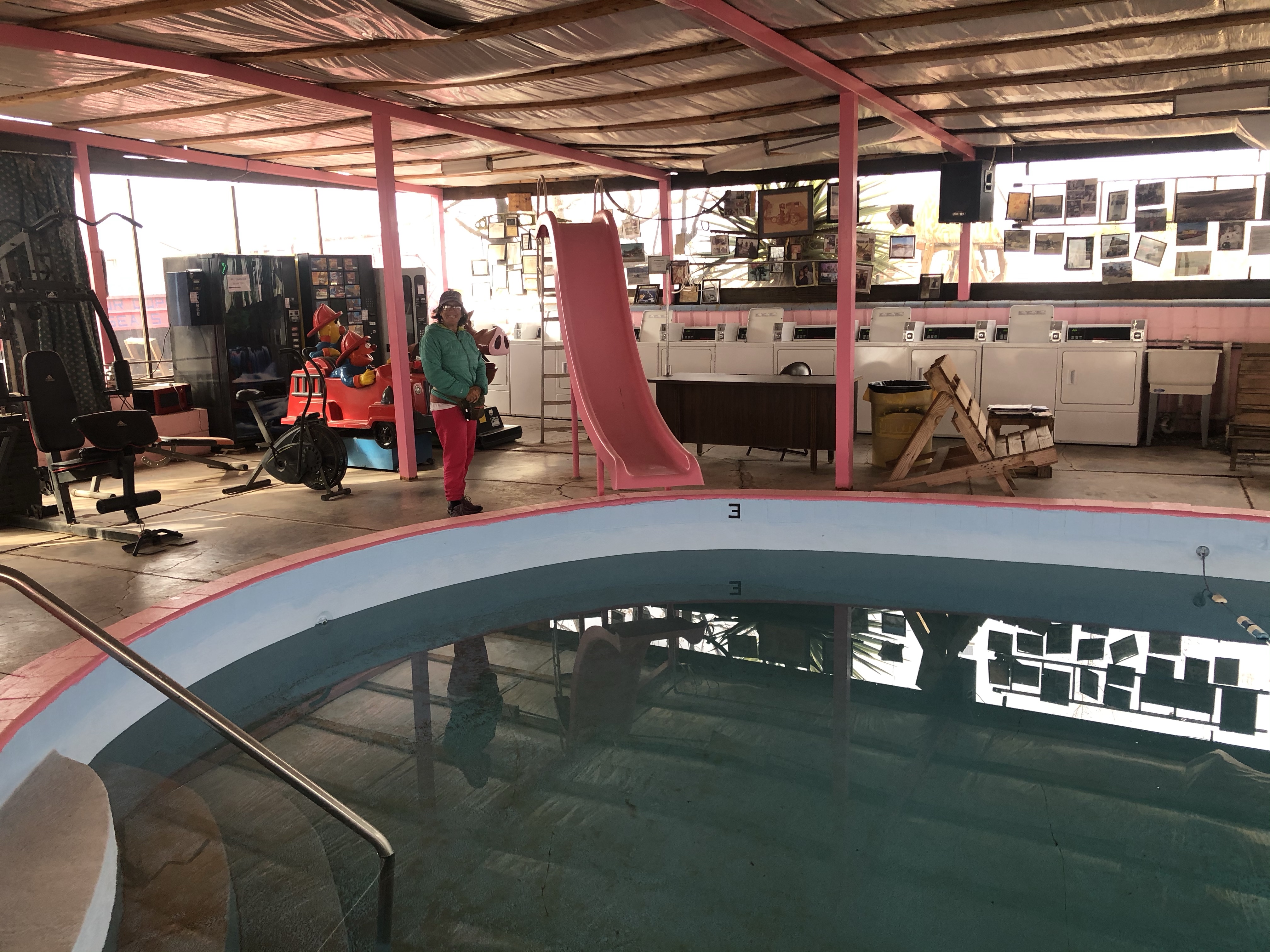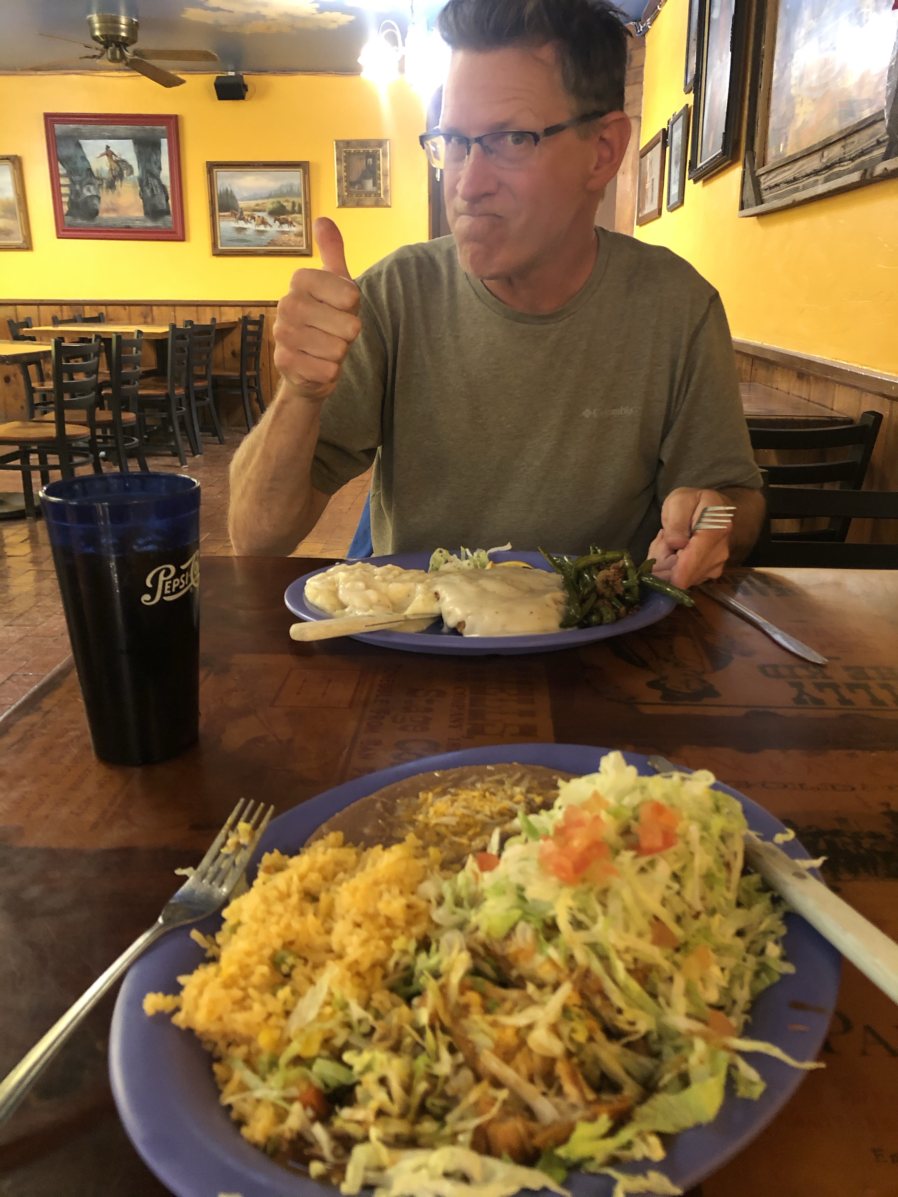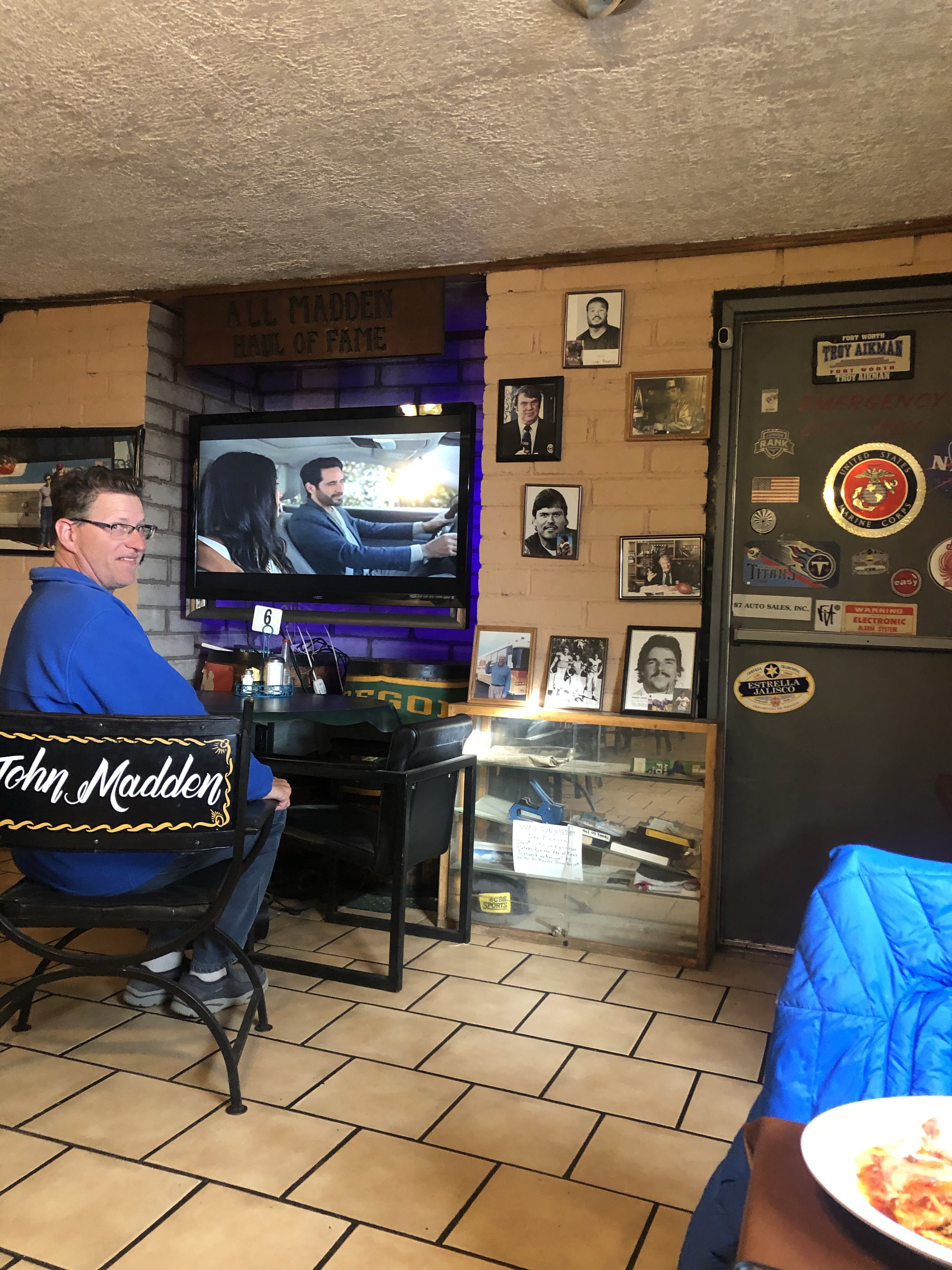 After that we put in some more miles and made it to VanHorn Texas and stayed at a pretty unusual RV park. Again this also was right off the highway. They had quite a setup here. A pool and laundry room with kids games, vending machines, a couple of pinball machines. A stage for church on Sunday and a thrift store all in one. It really was bizarre. We went across the street for a nice Mexican meal where John Madden comes often. So often he has his own seat and his own TV for game day. Lol