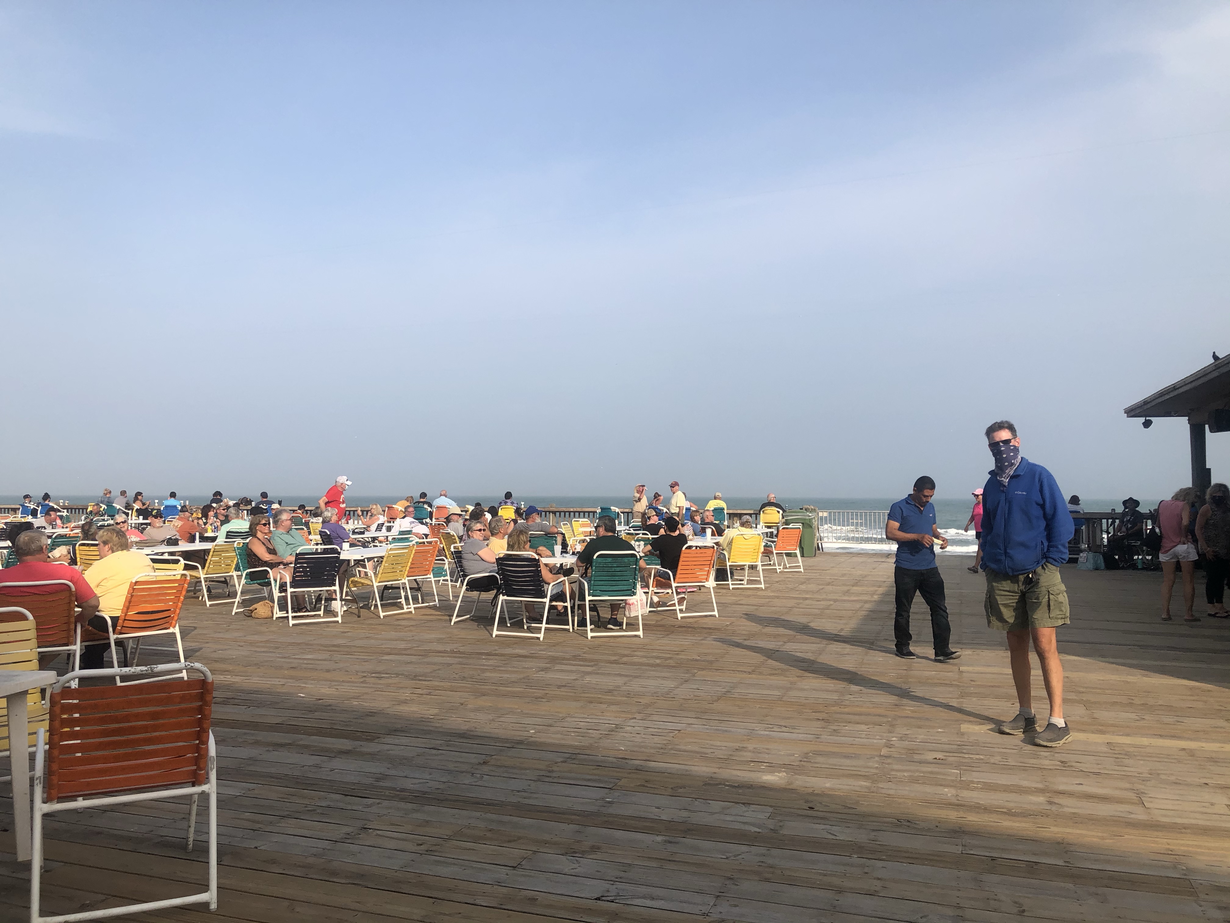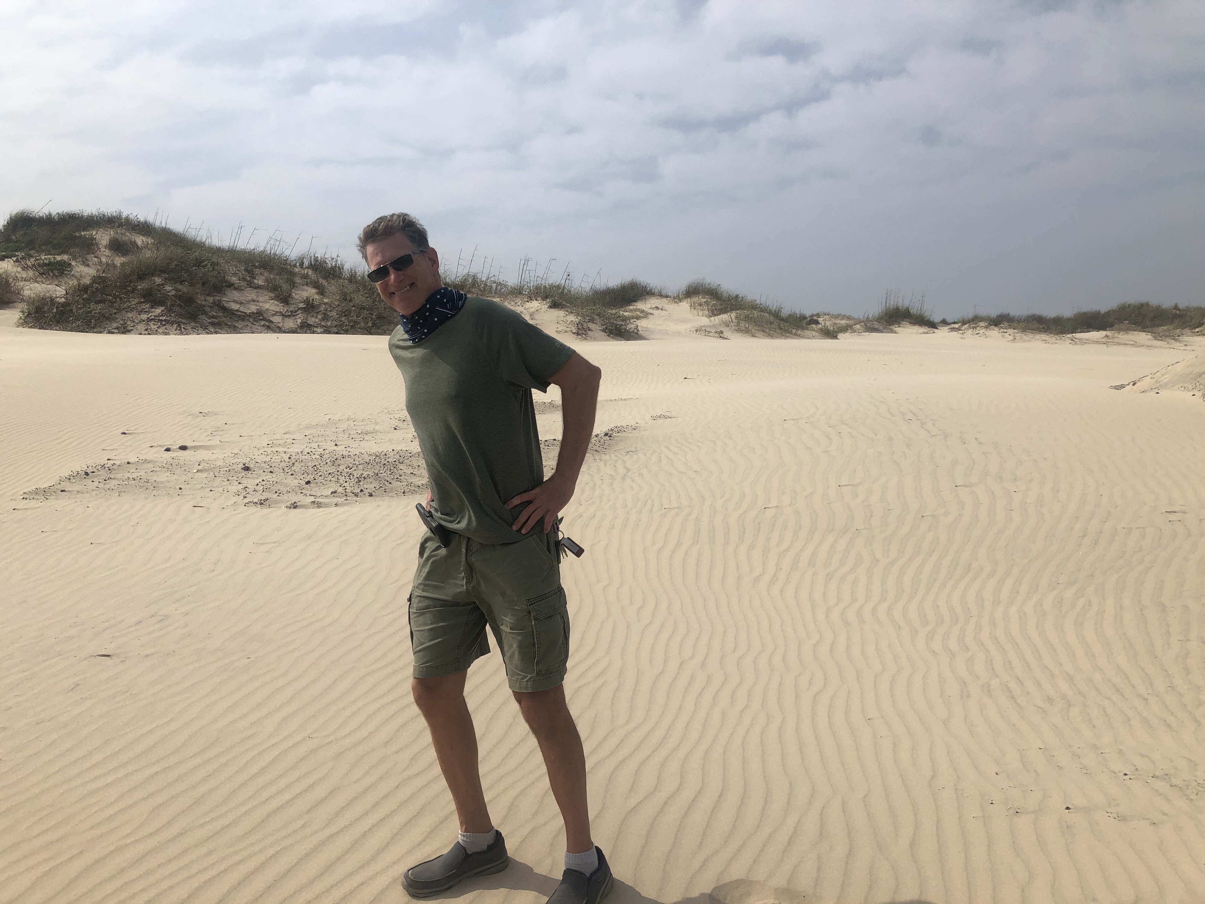 We decided to check out the “end of the road” area here. Supposedly you can drive and camp for free right on the beach like we used to do at Robert Moses Democrat Point. We drove down there and the dunes just got bigger and bigger on either side of the road. From the satellite view of Google maps, the road ended and the beach access starts. But here at the end of the road was a barricade. The area where there was beach access was not a spot where we would go on the beach without fully airing down our tires. They had no air refill station here like they do at Democrat Point. We have a small battery operated Ryobi Compressor to fill the tires but that would have taken forever and besides the wind was brutal so we walked around a little and then headed out.