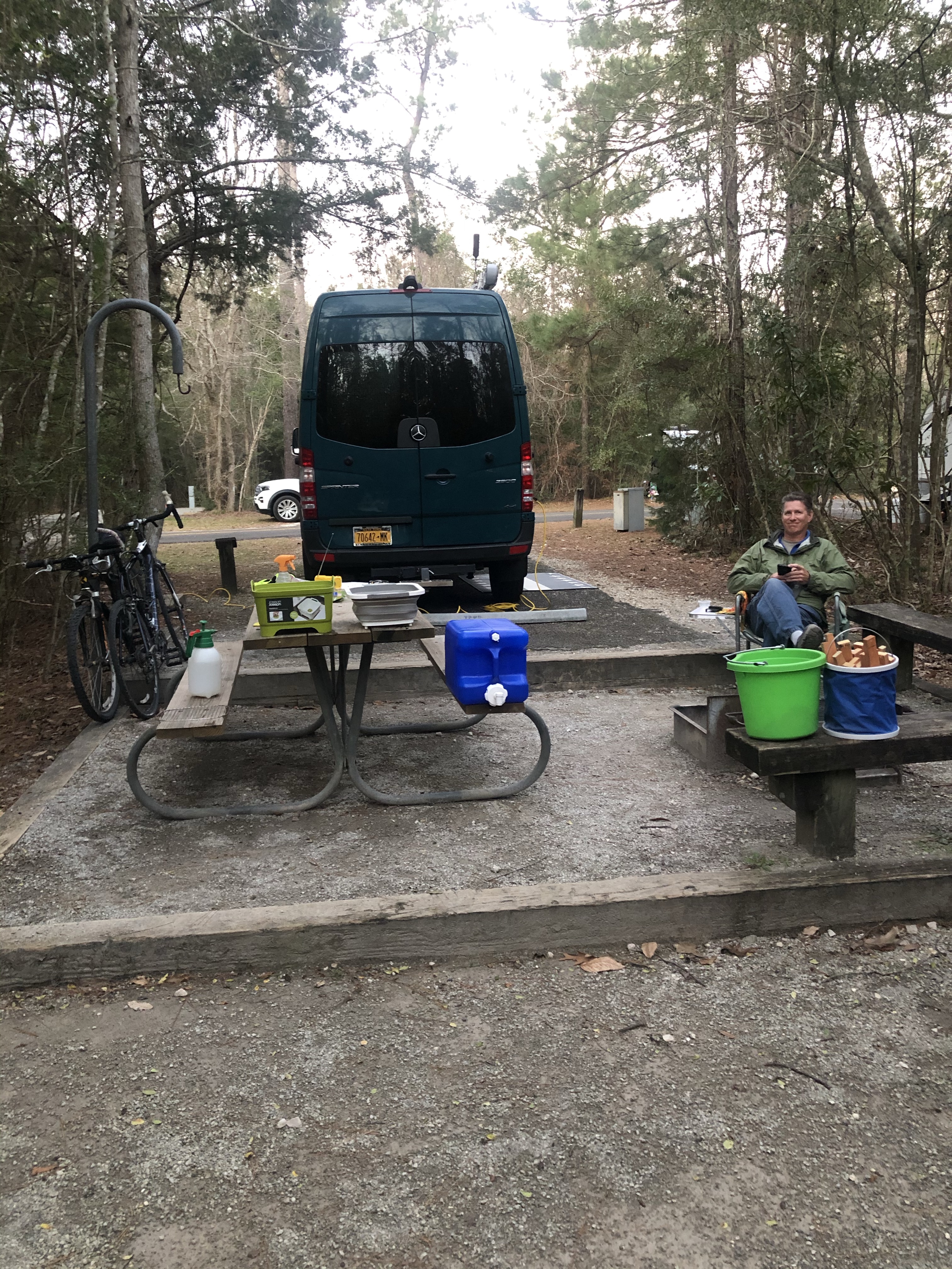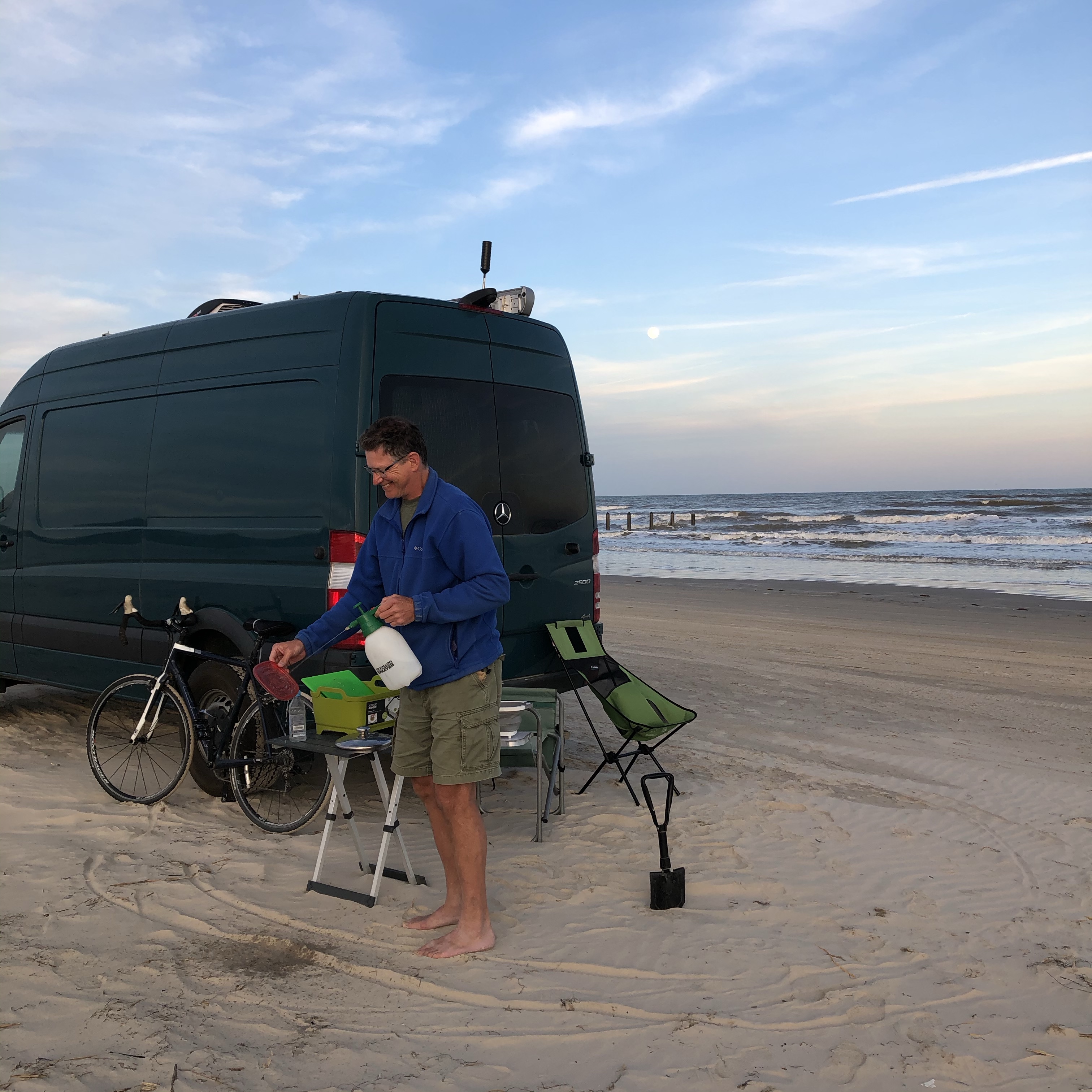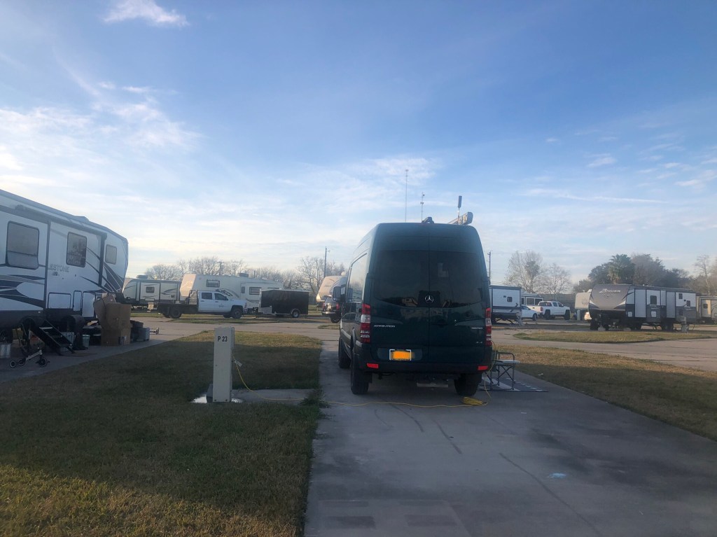 We took the van to a self serve car wash and scrubbed her clean. So much salt and sand from the beach and so much dirt and grime from the desert. We then drove to a nice RV park for the night in Bay City Texas. They have bathroom “suites” here. 4 for the men and 4 for the women. This is a big deal in the life of a vandweller!!