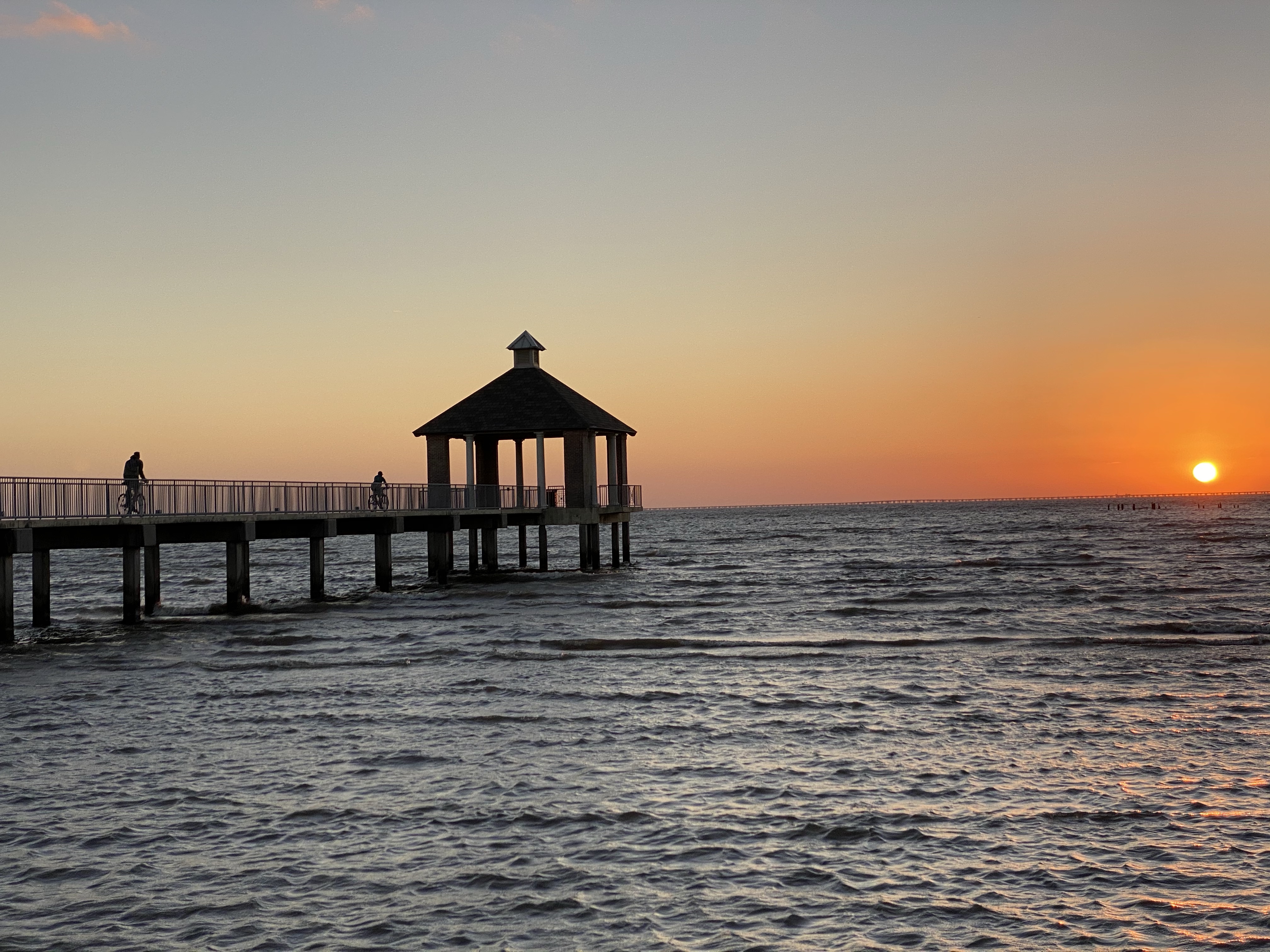 And then today, January 31st, the day the blog gets posted, today we drove two hours to another amazing State Park. Fontainebleau State Park in Louisiana. Another great park with a great rail trail for biking. We got a great spot and went on a great bike ride into the town Of Mandeville. This town was HOPPING!! So much fun. We made it back to the campground just in time for the Sunset. Such beautiful old trees in this park.