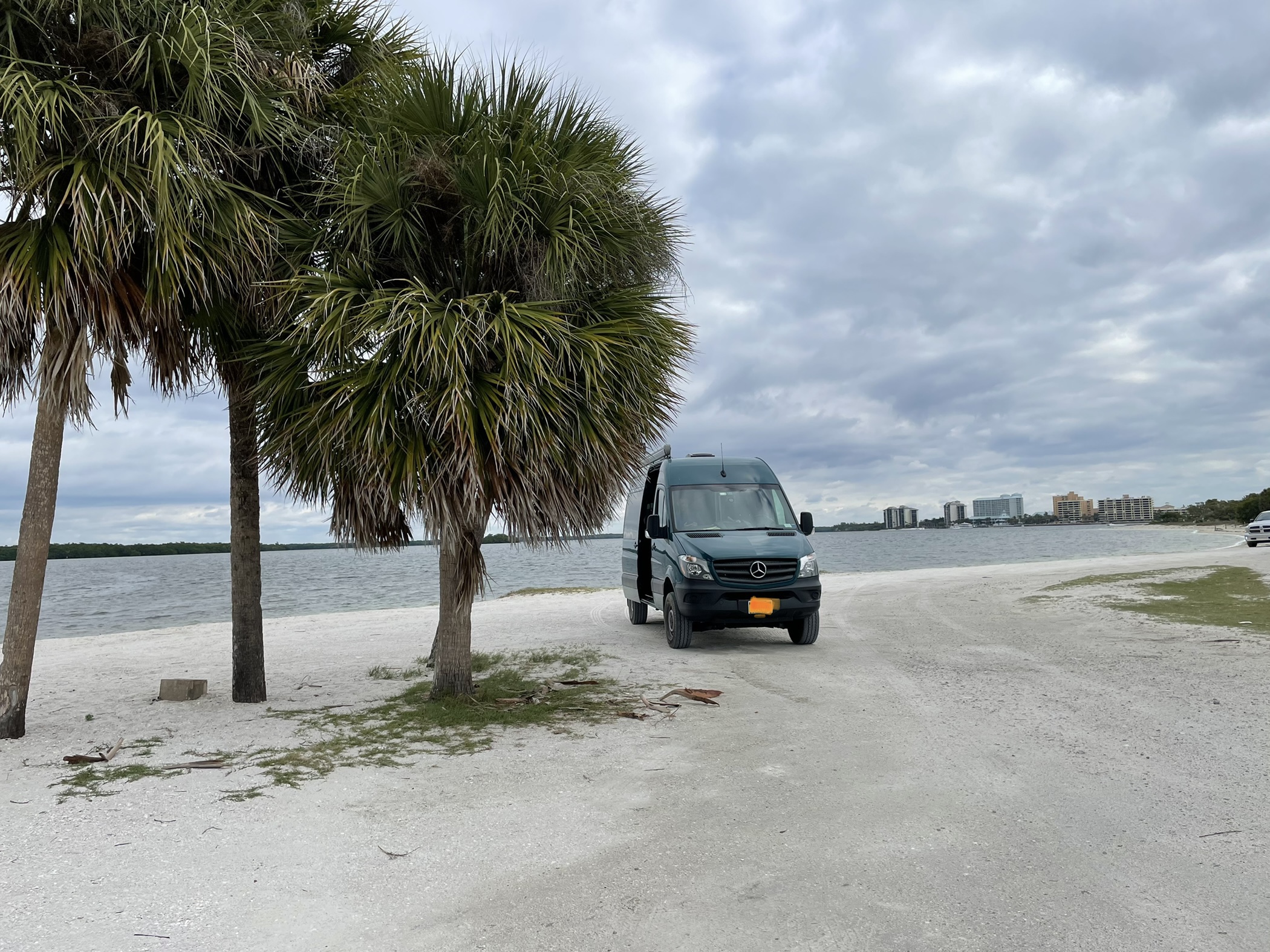 The a pilot Travel Center that we stayed at was a little Janky. It was fine and nobody bothered us but it had a Janky vibe so in the morning we headed to a nearby park called Billy Bowlegs Park. From there we headed over to Sanibel Island. We heard about the crazy amount of shells in the beach so we wanted to check that out. The causeway going over to the island was amazing because there were beaches on either side that we could pull the van right up onto. We hung out for a bit and walked the beach I. Search of some cool shells. We found tons of them. I have never seen so many shells in my life. We spent some time on the beach then traveled to the island. The island didn’t impress us as much as the small beaches on the causeway so we went back for the sunset. We even saw a giant Manatee swimming along the shoreline right in front of us.