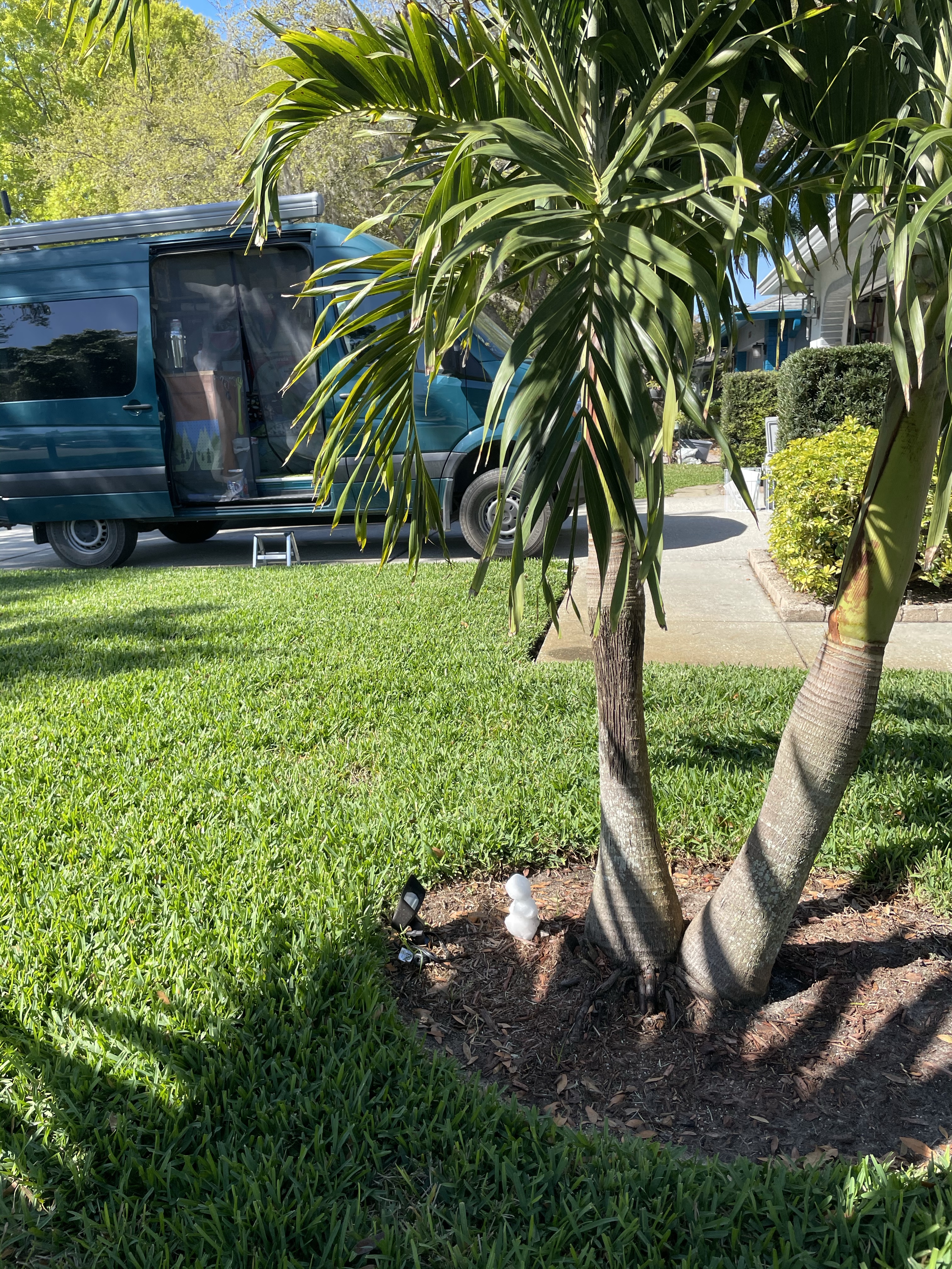Then we were off to visit my cousin Maureen. Our plan was to go on a boat road and have some lunch at a place called Get Away. However the winds were ridiculous coming over the St Petersburg bridge and there were waves and whitecaps in the bay. I was so happy when they cancelled the boat ride. I’m not a big fan of boats and I’m definitely not a fan of waves of any kind. So instead we drove right over to the restaurant. We enjoyed a nice lunch on the sand. This was a fun place to have lunch. Afterwards we went back to their place, gave them a van tour and caught up on old times and current events. My cousin Ali, (Maureen’s daughter,) is also an avid camper so she gave us a few recommendations that we will check out in Florida while we are here.