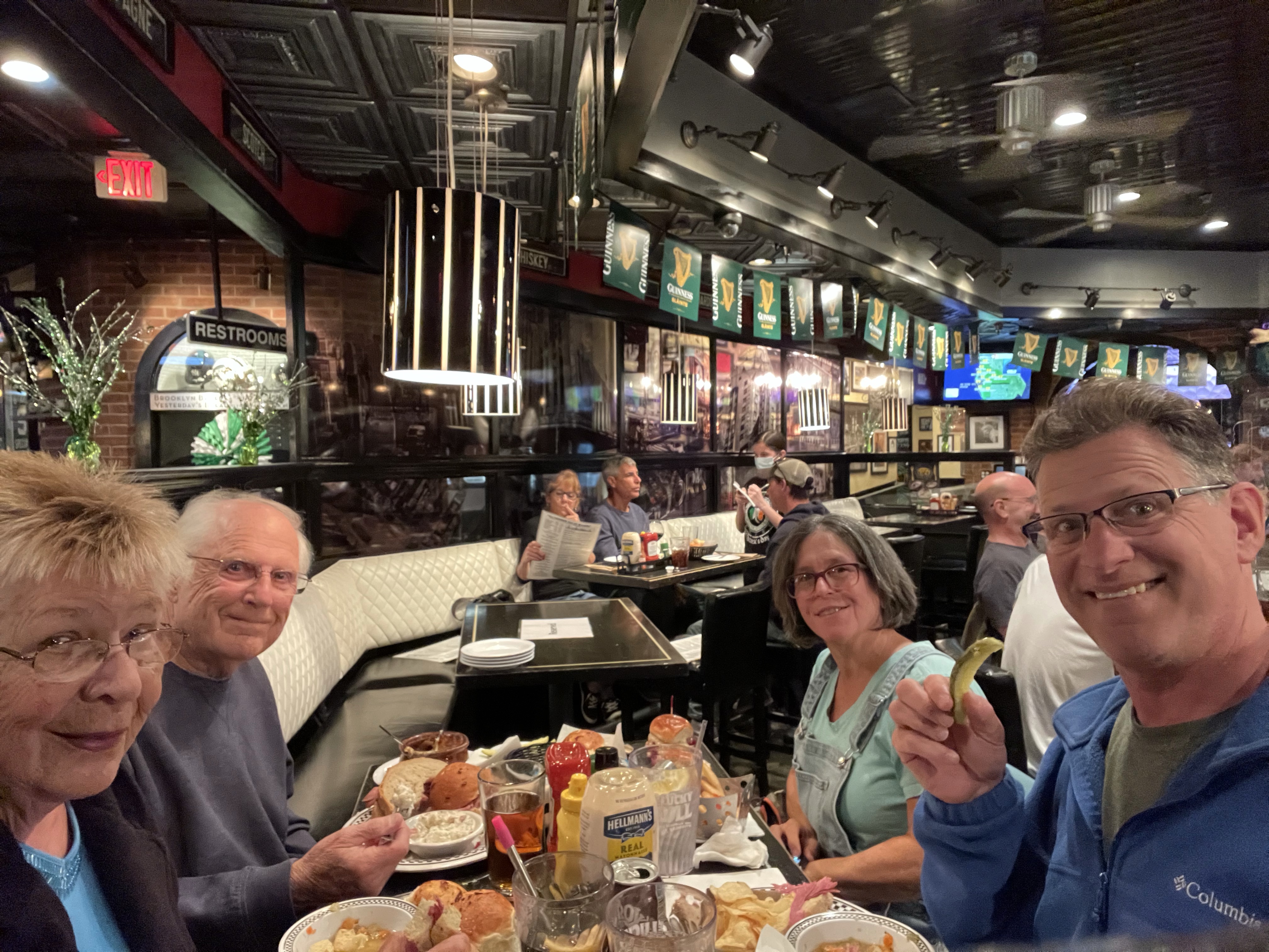 When we left Tampa we were planning on camping at a park on the bay called EG Simmons. But when we hit the road, the GPS took us on to the other side of the bay. We have the DUMBEST GPS in the world!! And probably the most expensive. Before we left Raquette Lake we invested in the Garmen RV GPS. It’s made specifically for people like us. Supposedly it’s top of the line. If I could do it all over again, I would never had bought this one. It really is terrible. We ALWAYS have to double check it’s route and the one time we don’t, it takes us completely out of the way to where our destination was. So we changed our plans and headed to Palm Harbor again where Greg’s parents live. By the time we figured out that the GPS was confused (again) we were only 20 minutes from them. They made room in the driveway and Greg and his Dad were able to fix the motherboard of our roof fan. It’s so nice to have that fan working again. They took us to the Lucky Dill for dinner which was like The Carnegie Deli in the city except fancier. It was a great place. We stayed with them a couple of nights, which gave us time to defrost our freezer. It really needed it!