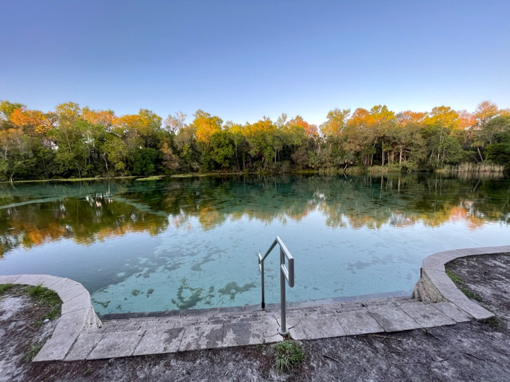 Today, March 10, we drove to the Ocala National Forest area. This is different than a State Forest area and different than a State Park. A National Forest offers dispersed camping. We found a spot at Alexander Spring Campground. There’s a Natural Spring here that fills a lake sized pool but it’s crystal clear. It’s pretty spectacular and there’s an area that goes down to where the water is coming up from the spring. They are like underwater caves and they are as blue as can be. People wear scuba gear to go down there exploring. Looks pretty cool. The temperature of these springs is a steady 72° year round which must be amazing in the heat of the summer. A few people were swimming but it was not warm enough for me. I’m a bit of a baby and Greg’s worse. Lol