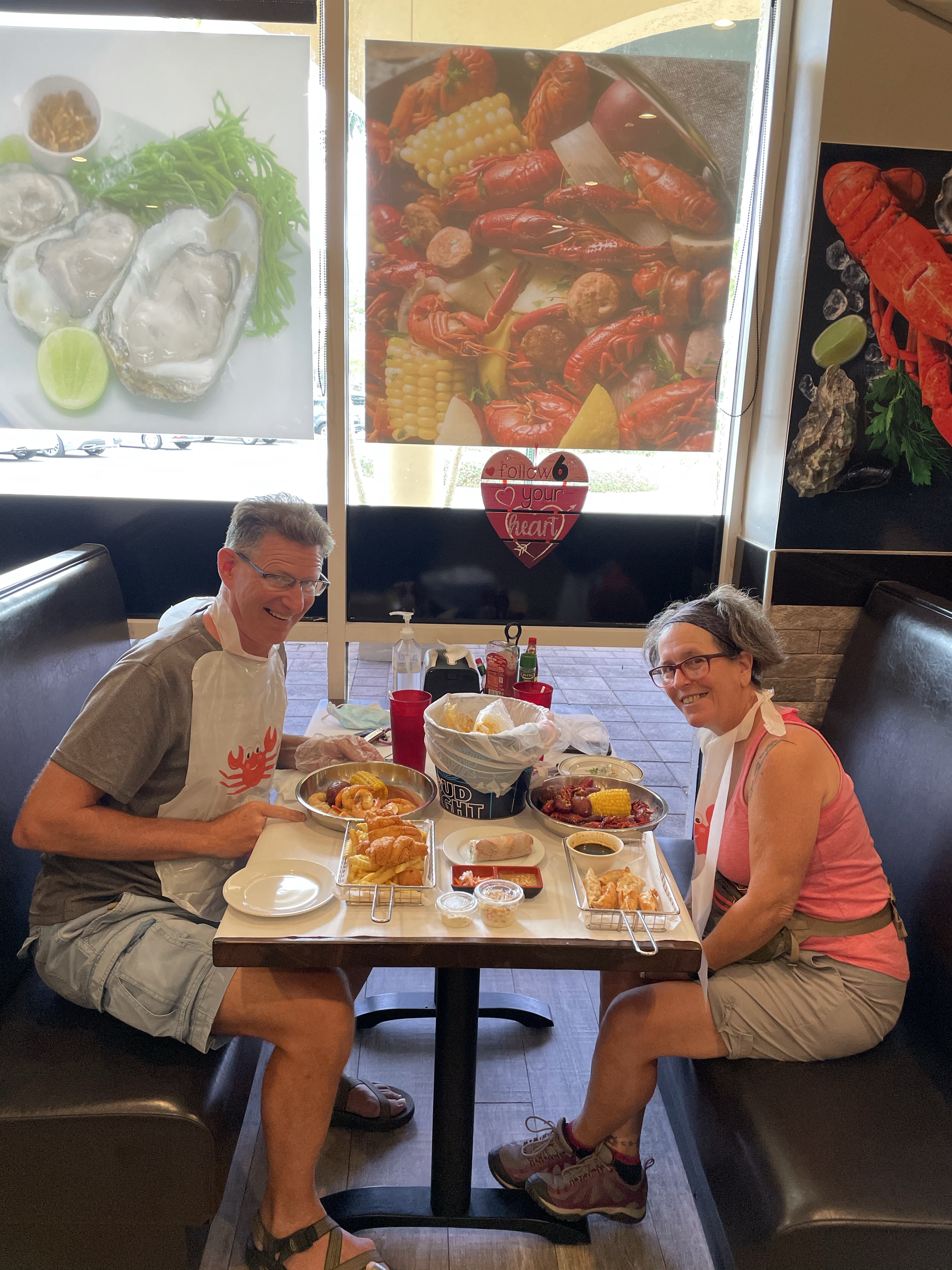 Next day we did a boardwalk hike down the road from the State Park. There are some photos above of that hike among the Cypress trees. From there we headed into town to check out the Bass Pro Shop to see if they offered RV parking overnight in their lot. Unfortunately they didn’t because they didn’t own the land that the building is on. Most other times Cabellas and Cracker Barrel’s and most Walmart’s will allow overnight parking for a night. We wanted to stay in town because we were headed to the movies and didn’t want to be worried about where we would camp after the movies cause it would be dark out. We have always been situated for the night before dark. Anyway, we noticed a Pilot Travel Center was nearby the movie theater do we decided in that. First we had lunch at an amazing Seafood Place.