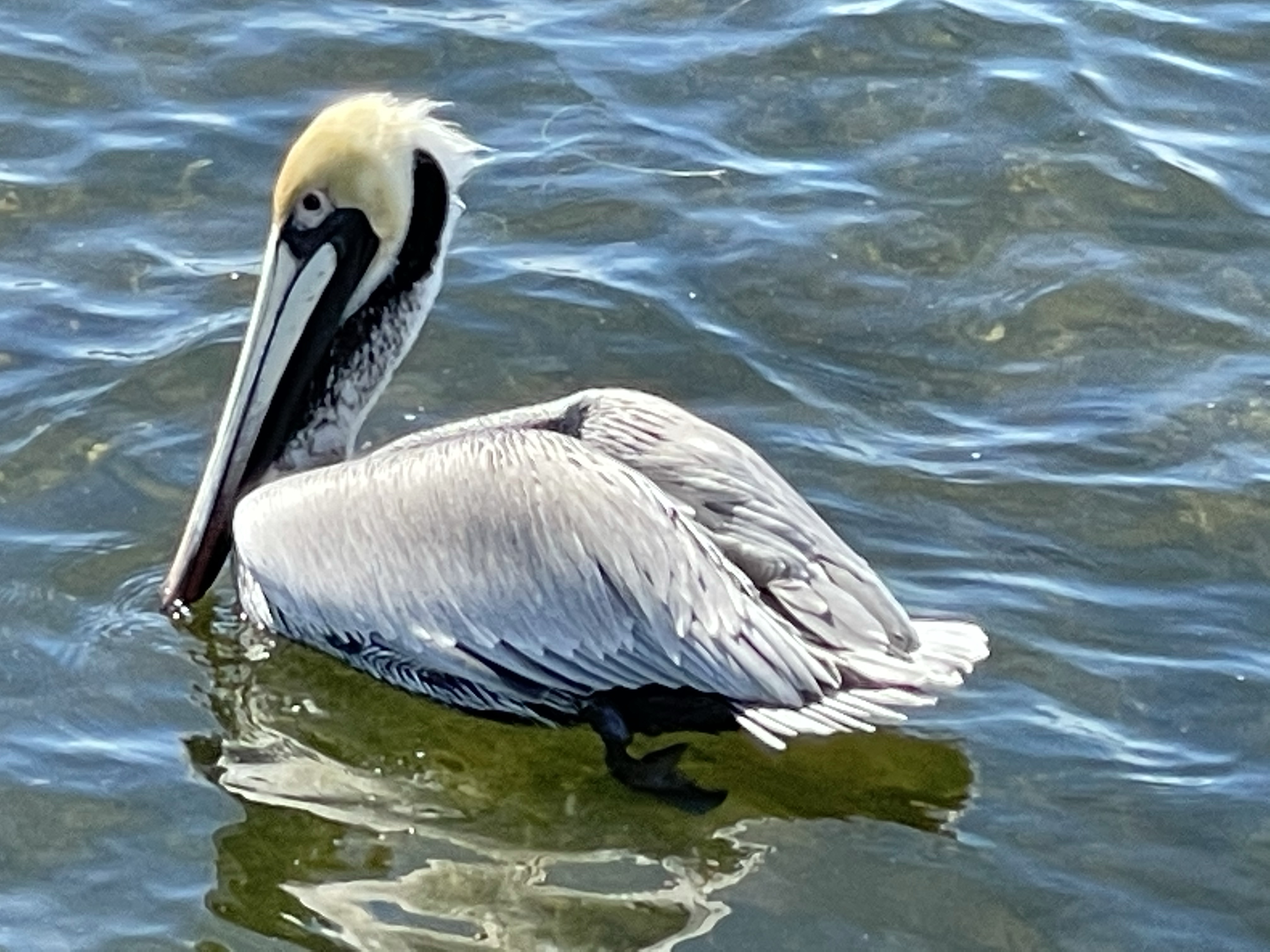 The next day was our birthday so we wanted to do something special. We heard about a great restaurant on the tip of Pine Island on the water called Captain Cons. It was perfect. Not too many people and laid back outdoor dining with a great view. We both got the fish special and enjoyed a nice day on the island. And I finally got to see a Pelican up close.
