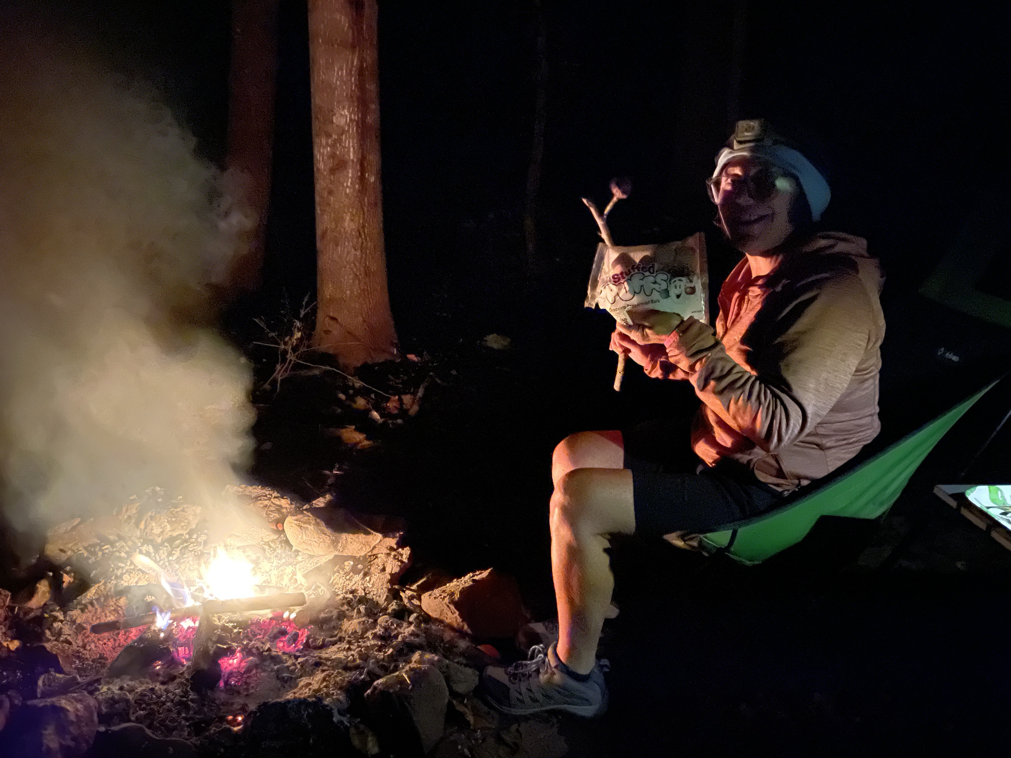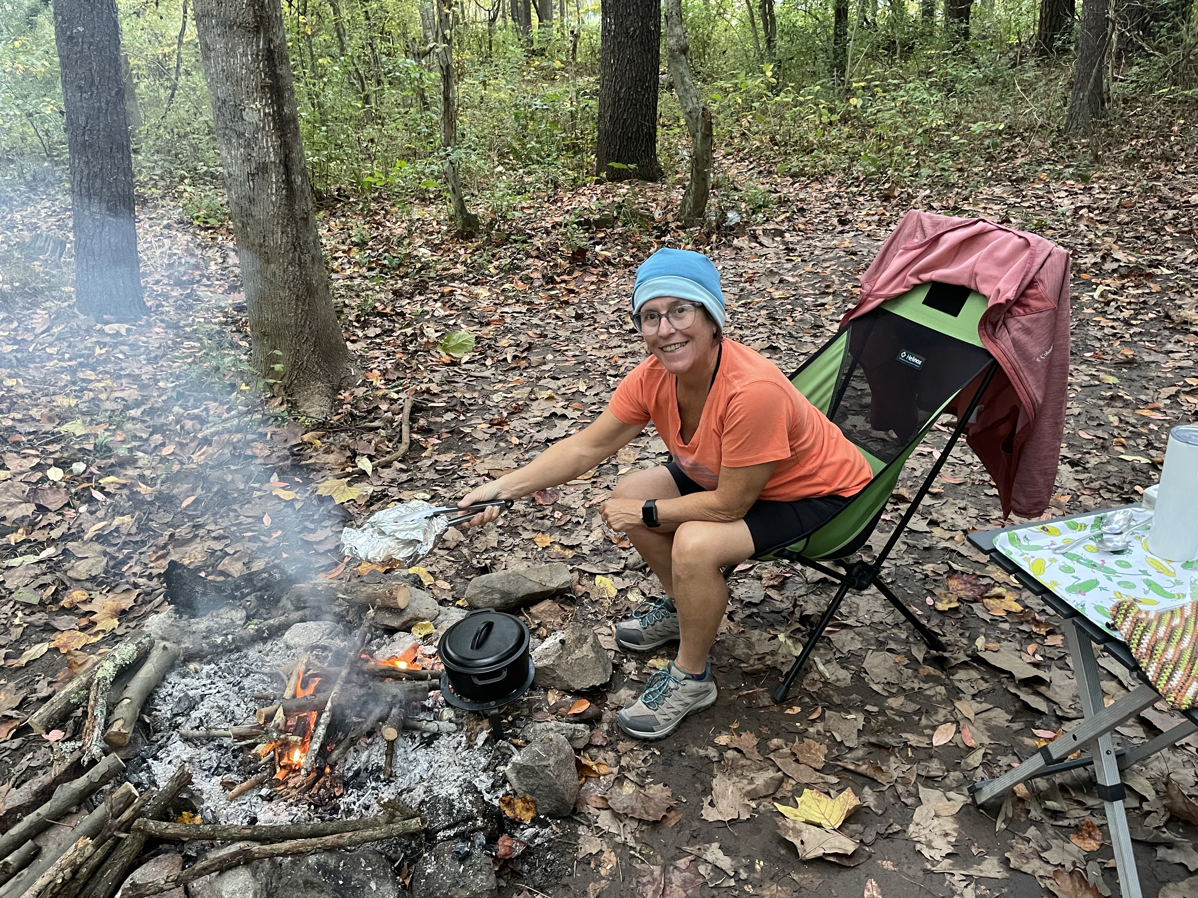 I purchased a new pot for this years journey. It’s a 2 quart cast iron pot that I can set right on the fire. Greg bought me a trivet for Christmas from the Townsends website. The Townsends is like a colonial show where they dress up from that era and cook outdoors and build cabins and stuff. They make cookware used in the colonial days. I couldn’t wait to use these two items! Rosemarie made us some soup which was perfect for me to test out my new cookware on the fire pit. It worked as planned and the soup was delicious. We roasted some marshmallows and went to bed.