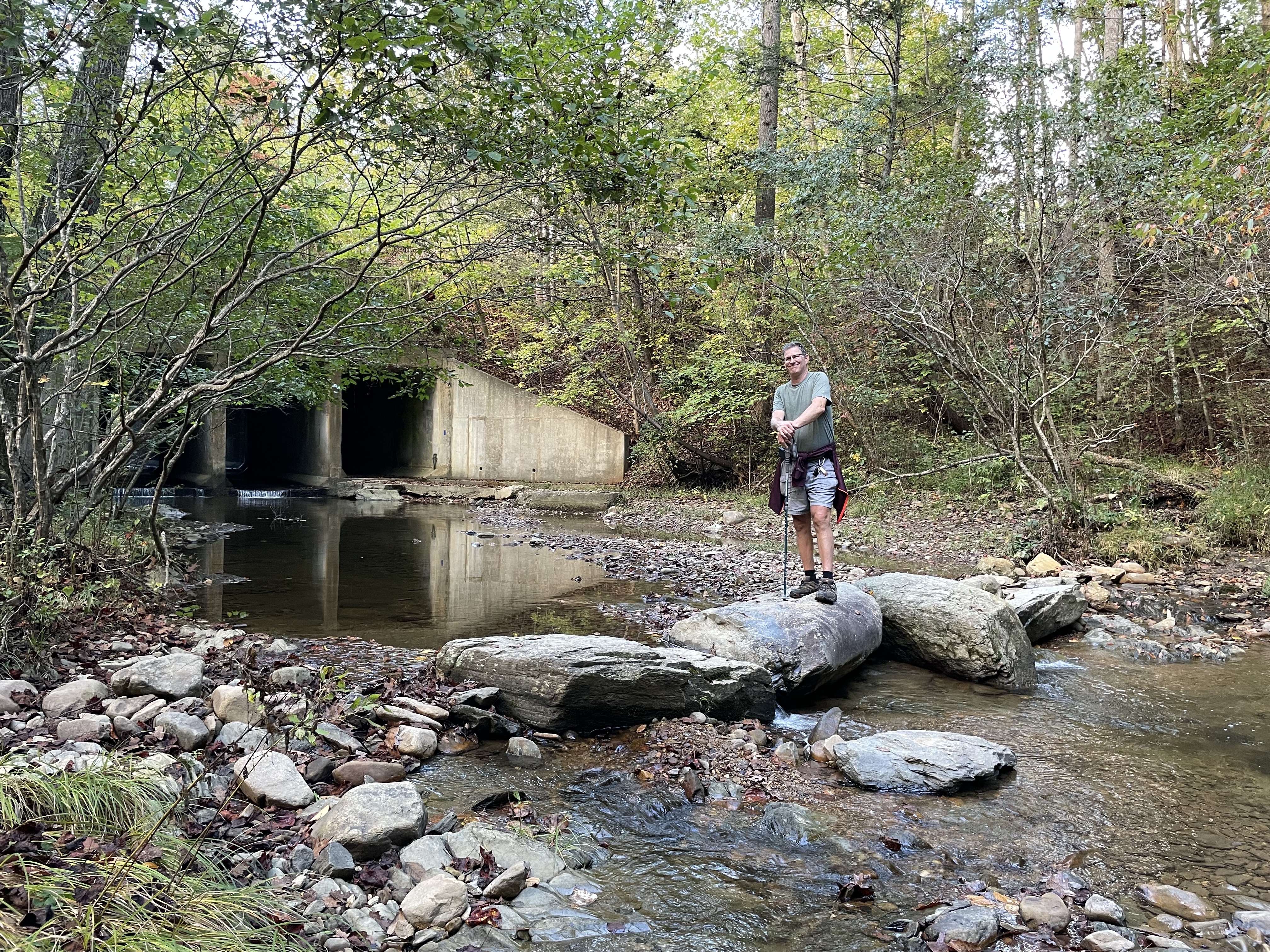 Plus there are campgrounds and tons of hiking trails all along the Parkway. Our first campground was called Otter Creek. We were able to drive around the camping loops in search of the perfect spot. It’s so nice when they let you do that instead of them just picking the spot for you. We found a great spot right on a creek. Had a little lunch and then headed on a hike that ran along the creek and crossing over the creek as well. Crossed over the creek seven times. Some were bridge crossing, some were rock crossings and some were tunnel crossings which were pretty cool.