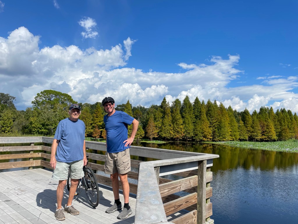 Ron, Greg’s Dad, took us on an awesome bike ride. Beautiful area overlooking the water. We saw tons of turtles and lots and lots of birds. there is even a disc golf course over by the bike trail. We played three holes with Ron. There is definitely a learning curve involved in this sport.