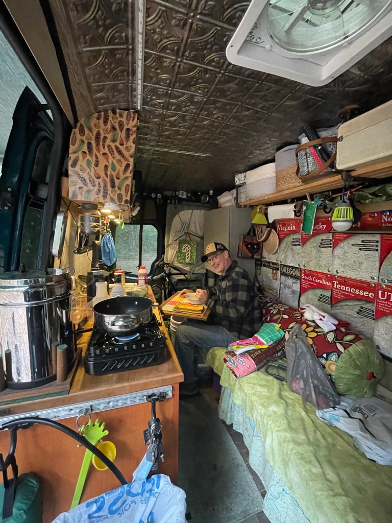 Woke up to another yucky, rainy cold morning but not as cold. Thankfully it’s starting to warm up and we will probably head to a campground today. We both could use a shower for sure.
