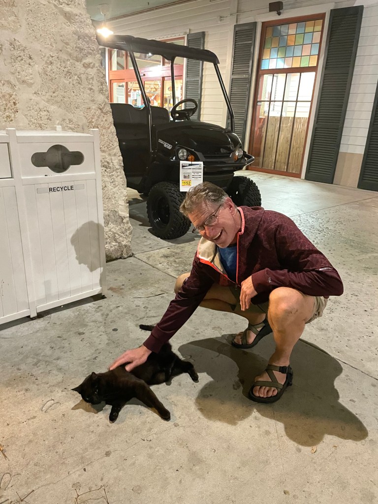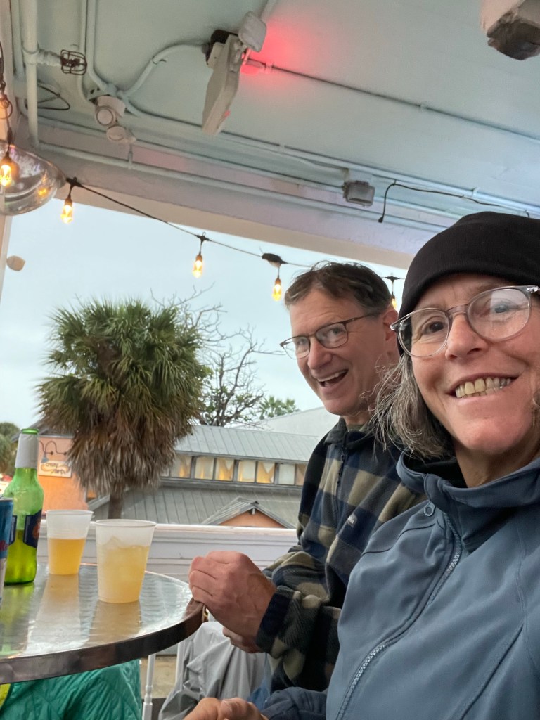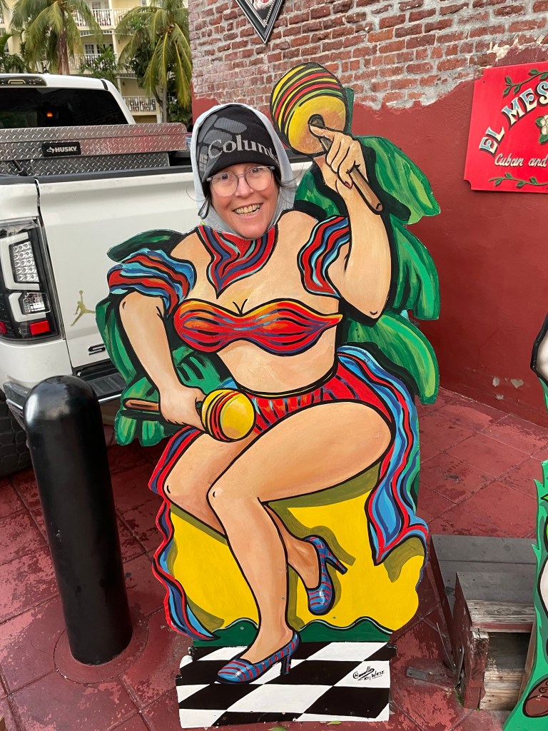 We decided to spend another night stealth camping in Key West. This is no easy task as it is illegal to sleep in your vehicle in this town. The campgrounds are over )200 for one night and there are not sites available anyone. So Stealth camping is the only option. We have become quite good at it so don’t really worry as much as we used to about getting the “knock knock.” We found a nice spot on the street across from the Dairy Queen and headed back to Duval Street. It continued to rain all afternoon and night. We had a bite to eat at Duffys Lobster and steak House.