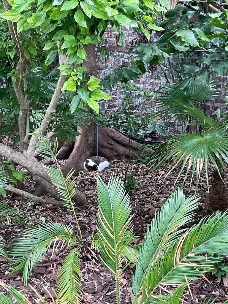 We also bought some fried chicken at Publix. It was really really good. We ate this feast at the Bass Pro Shops parking lot. There were way more campers tonight than there were last night. We also met a very friendly cat.
