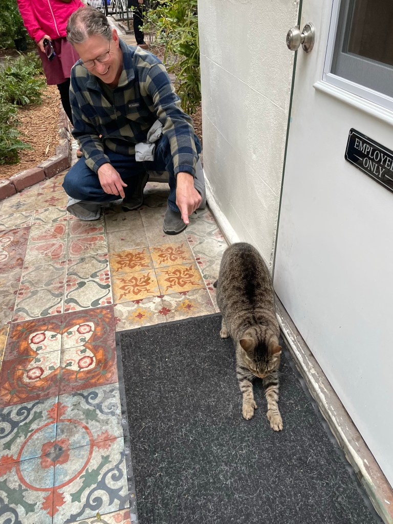 We decided to head over to Ernest Hemmingways house to do the tour and get out of the rain for a little while. Every other tourist in Key West had the same idea as us. It was jam packed. We decided not to do the group lead tour but instead just wandered around the house and the grounds. Ernest Hemingway apparently had a fascination with 6 toed cats. I guess he breezed them and they lived there in his house. I guess I would have more info about this if I actually participated in the guided tour.