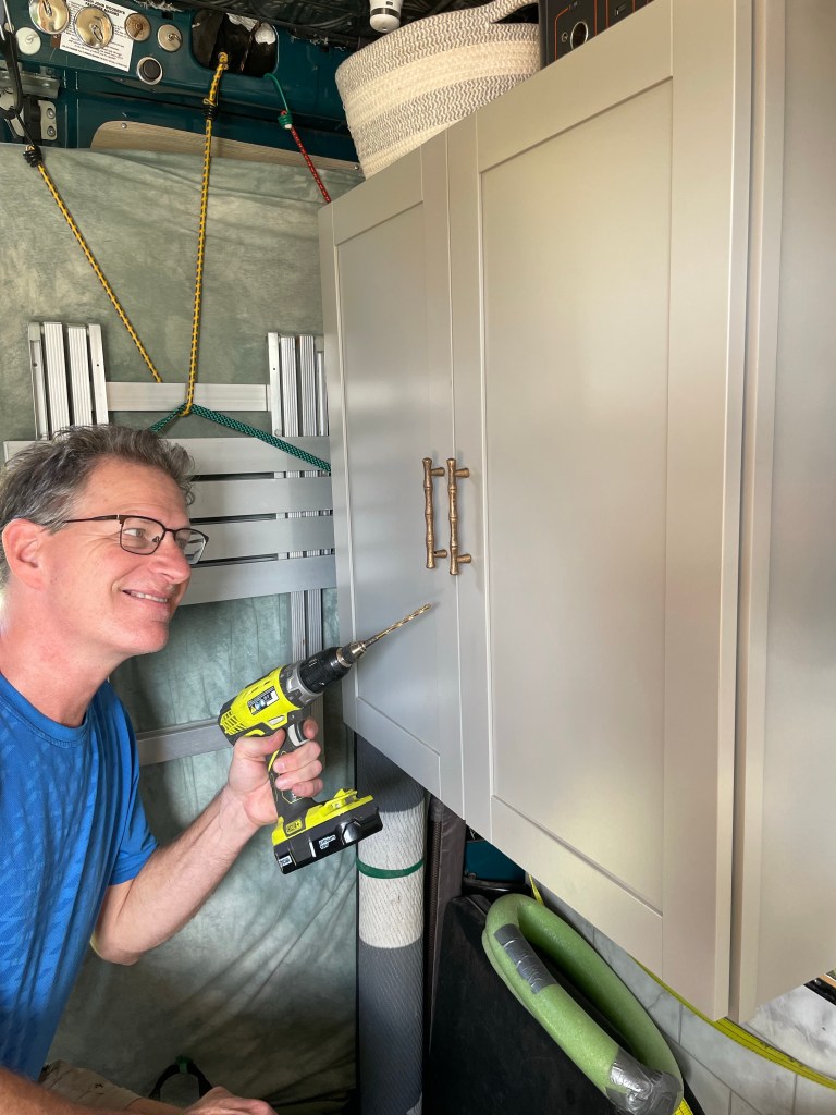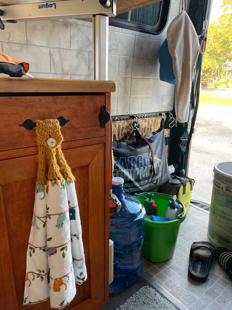 I forgot to mention that we got a new water jug and a battery operated water pump/faucet. It’s been so nice refilling our water bottles and jugs and washing up. We also installed the new hardware for the pantry doors. We bought super strong magnets to keep the doors closed while driving. They are so strong that I could barely open the doors. With the new handles, they are easy to open and look pretty darn chic. we also bought a new security camera which helps ease our minds when we leave the van alone to go exploring.