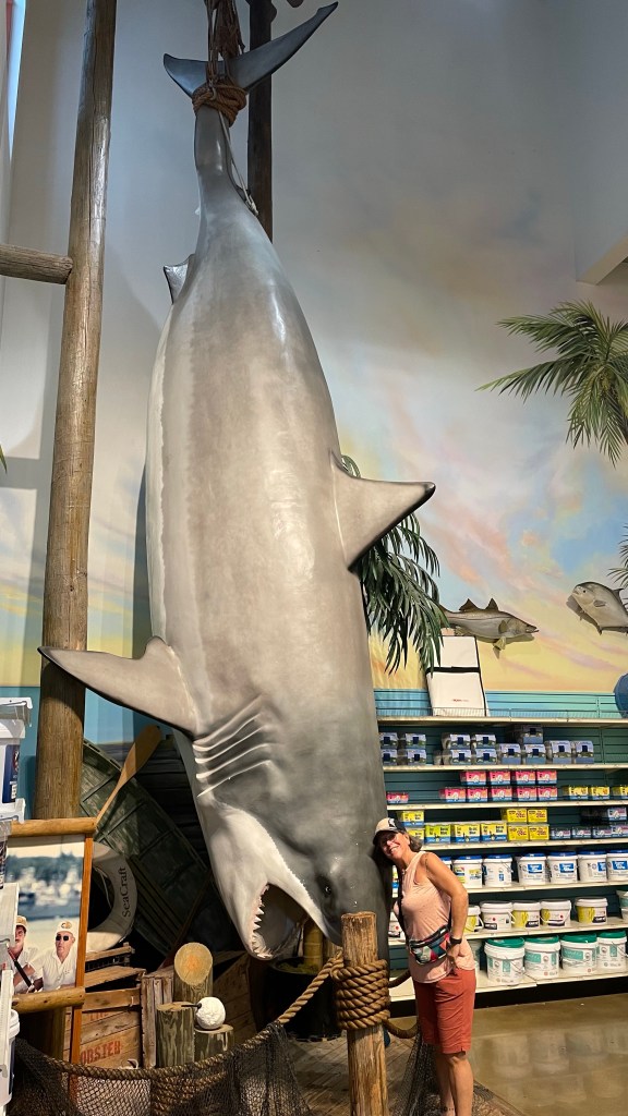 Last night we left the park and headed to the Bass Pro Shops parking lot for the night. There are 6 RVs here for the night. We had a nice fish dinner at Islamorada Fish Company.