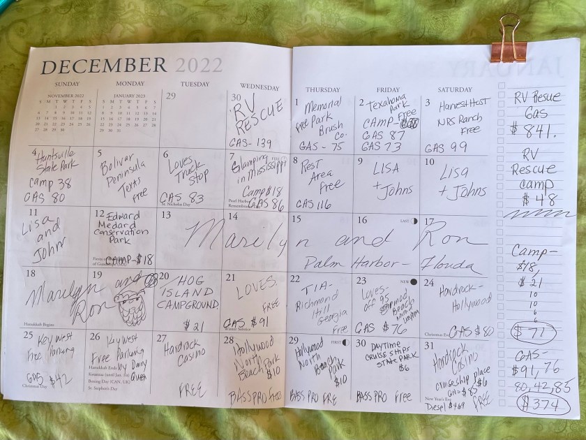 Below is the December calendar of expenses for Diesel and for camping.