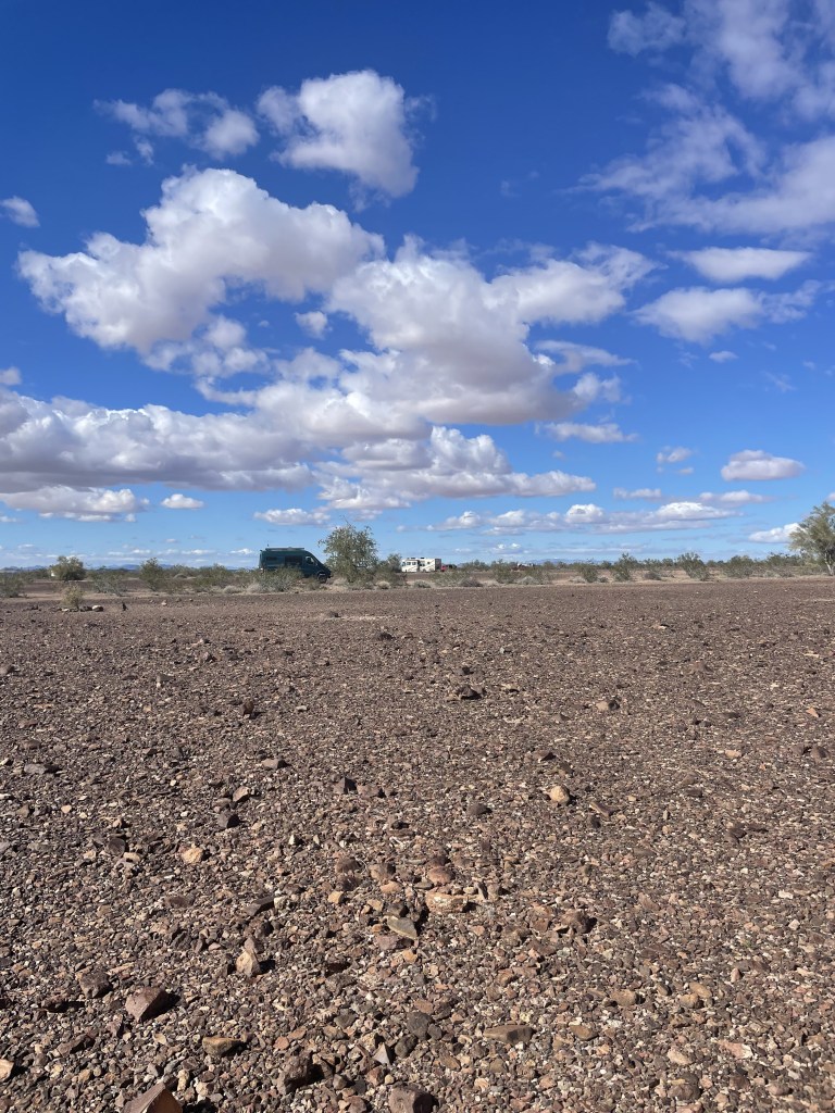 From there we headed back to Plomosa Rd for a peaceful night. Plomosa Road area is so empty compared to what it looked like when the Big Tent was up. We stayed a few days here as the weather was still not cooperating. It looks beautiful but that wind is not fun.
