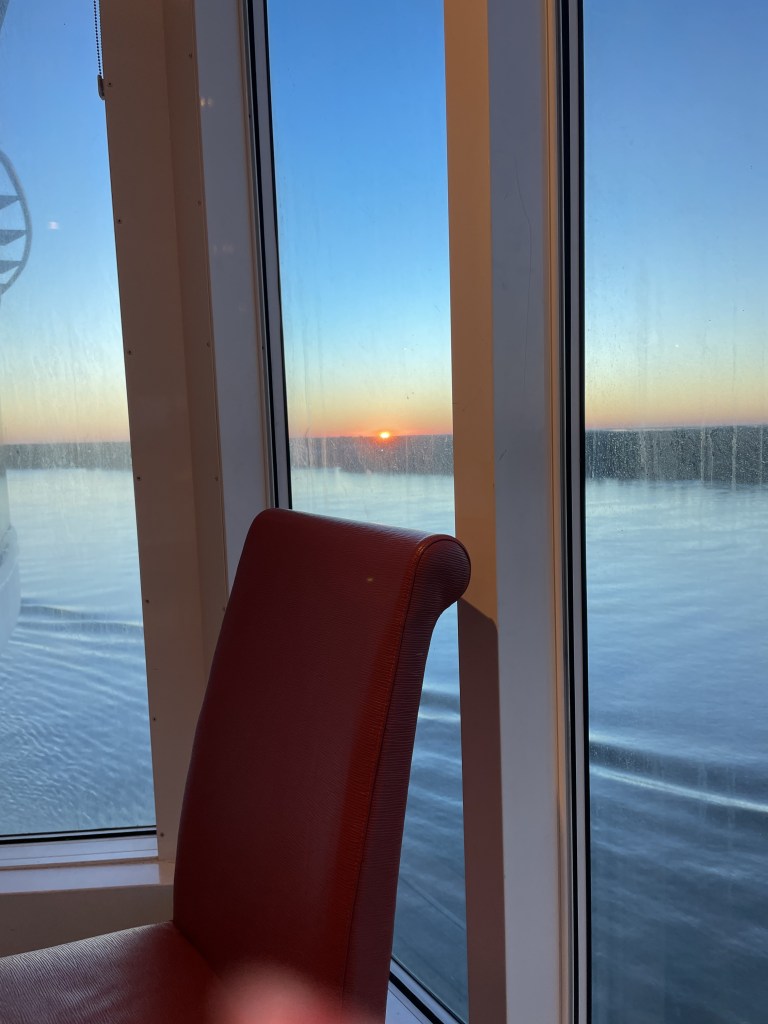 The temperature has gotten pretty cold. It’s perfect weather for van sleeping but not so perfect for cruising. And on top of that it’s super windy. But hey, it’s better than working. The ship went under the sky bridge in Tampa which was pretty cool. A very tight squeeze. I’m glad we went to the 11th deck to experience that. After that we had some dinner and then to the show.