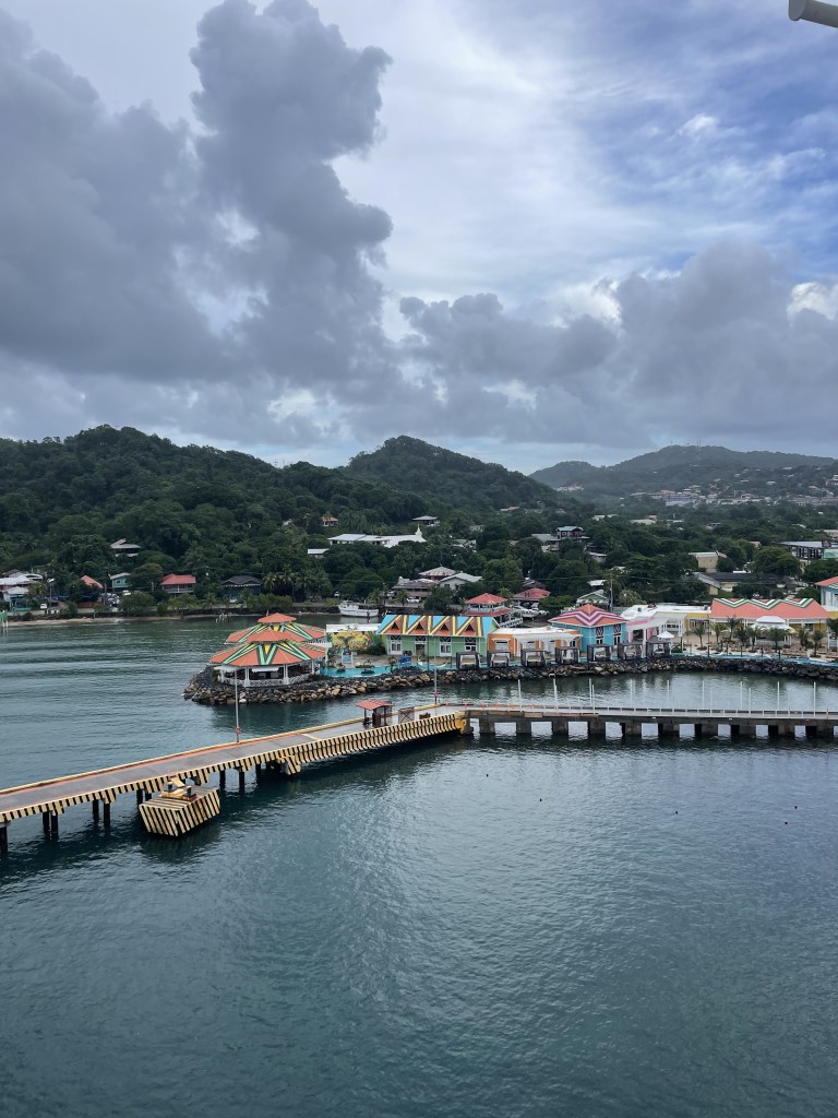 Woke up at 6 and headed upstairs to see the sunset but instead was met by a thunderstorm. After the storm was a pretty nice rainbow and then soon after pulled into the pier of Honduras and it did stop raining.