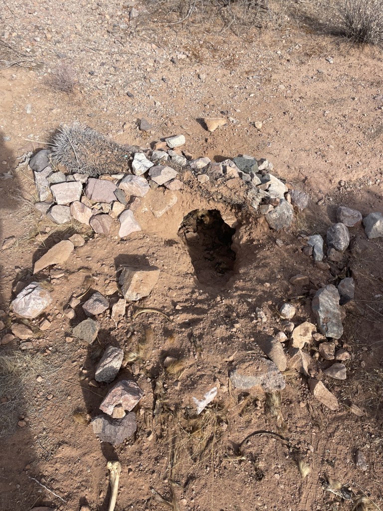 Spent two nights in the Cactus Forest by Darden Wells, near the town of Ajo, Arizona. It’s like a 10 minute drive down a dirt road with spots on each side that are few and far between. We were lucky enough to get the same spot that we stayed in like 4 years ago. Everything about it was exactly the same except for one thing. Someone thought it would be a good idea to bury their dog here and the Coyotes dug up the grave and bones and fur are scattered everywhere. At first when I saw the hole with the bones, I thought I would have to make a call to the Police but then I saw the fur. Lots of fur and lots of bones. Whoever buried the dog probably thought he did a good job. He put a lot of rocks on top and a big cactus on top of the rocks but that didn’t stop the Coyotes. Amazing that they found it.