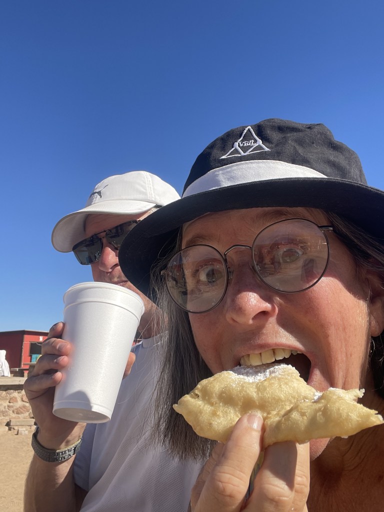 From there we headed east in search of a shower. Decided to stay at the Beef Jerky RV park in Bowie. I don’t know the actual name of the place just that they sell every kind of Jerky known to man. The RV spots are only 10 bucks and that includes a nice hot shower. They also have a good food truck on location which was pretty good. This town, Bowie, has over 700,000 Pecan trees. It’s unbelievable how many trees there are as far as the eye can see. Needless to say, Greg had several slices of Pecan Pie while here in this area. Next day we decided to take the 3mile hike to Fort Bowie National Historic Site. This was where many battles happened between the Apache Indians and the US soldiers to protect this mail route that went across the country. This spot that we hiked had a couple of natural springs which was very valuable for both the Indians and the mail carriers and soldiers. It was a very well laid out trail that ended at the parks visitor center. We received a Healthy Hiker pin which is something new that the National Park Service is doing. Anything longer than 3 miles, gets you a really cool NP pin. The program is called Hike to Health. Each park offers different prizes for hiking.