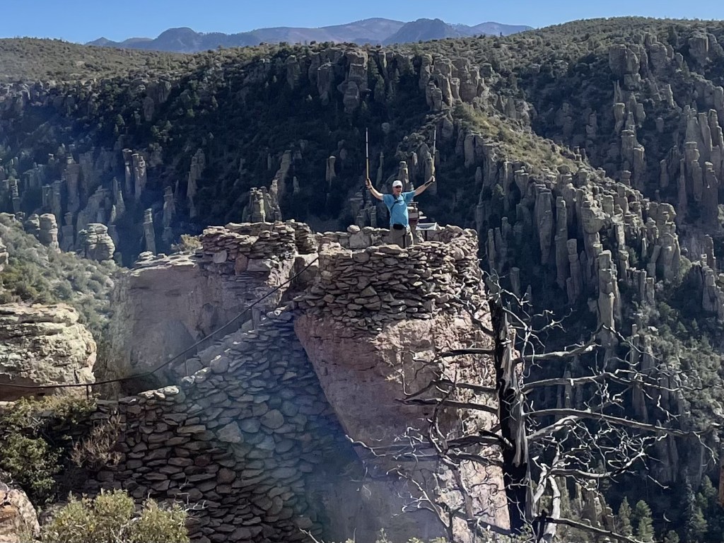 From there we headed into the mountains to another National Monument. The Chiricahua National Monument. We heard great things about this place but it’s always been too cold for us to go up into that elevation. This time however, the weather Gods were with us and we were able to book a sight at their very small and quaint campground. We checked out the site but didn’t set up because the hikes were on the other side of the park and we had a few picked out from the maps they gave us at the visitor center. This park and these hikes we took and the drive to get to the trail head were National Park worthy. We couldn’t figure out why this place was only labeled as a National Monument. We think maybe because they were lacking in parking spaces at the trailheads. We got lucky and got a great spot and went on an amazing hike.