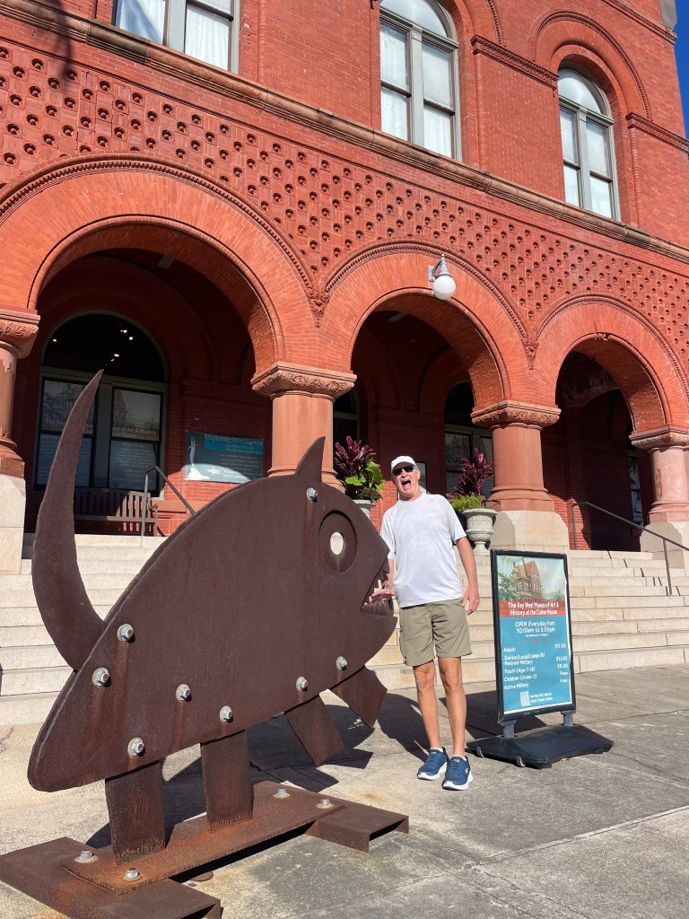 Next morning we arrived in Key West. It was a Sunday so I walked into town to go to Mass. a beautiful Basilica with a fun young priest. On the way we stopped at CVS and I found this cute blue hat.