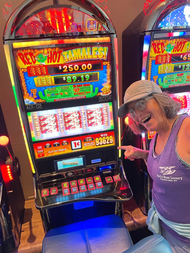 So I cash it out immediately and then move down the row to another machine. Another Hot Tamale machine and I hit three yellow sevens for $448 dollars. It was so surreal!!!