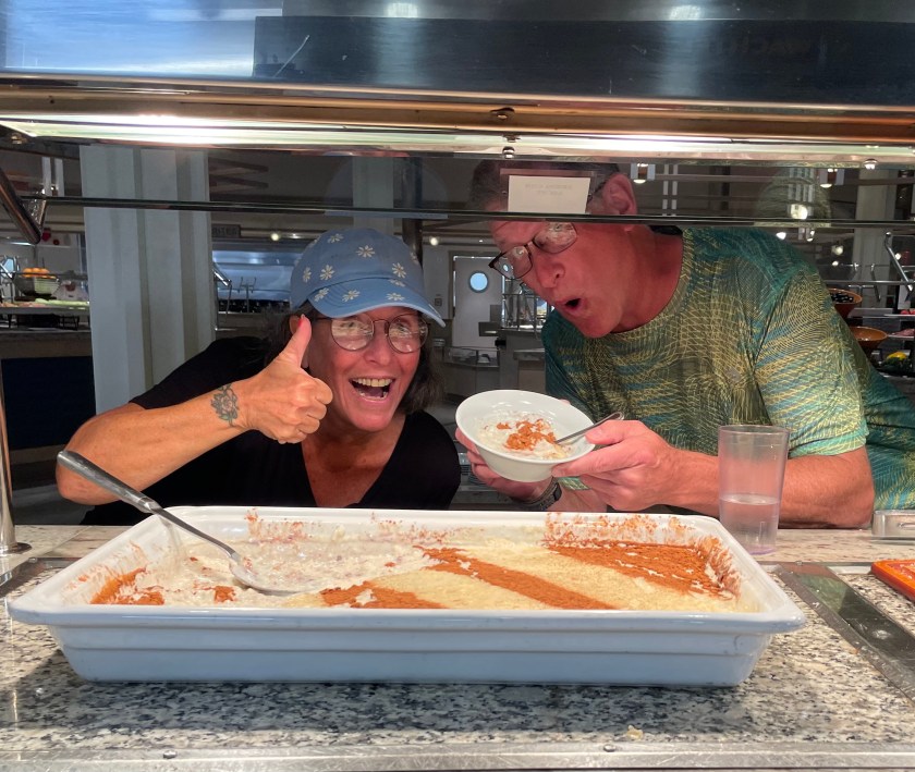 That night they had the most delicious rice pudding. It was right up there with my Aunt Theresa’s rice pudding. I’ve spent my life tasting rice pudding in the hopes that it will taste like Aunt Theresa’s but it always falls short. Somehow this cruise ship must have gotten Aunt Theresa recipe because it was really really good!!