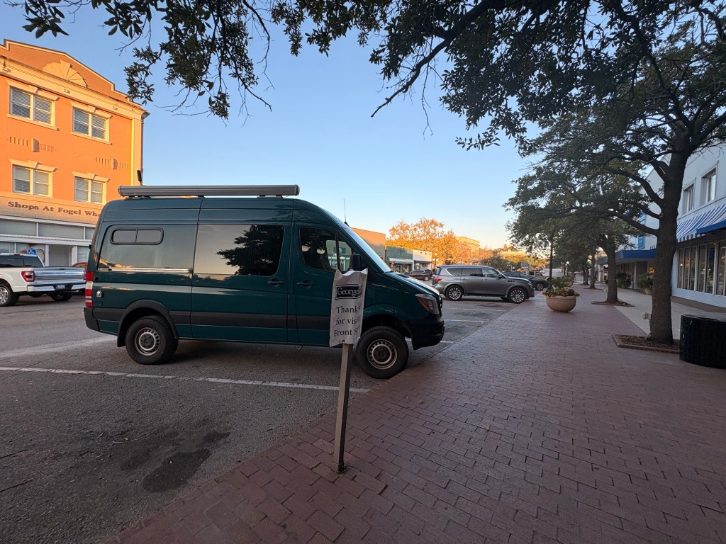 We showered and headed out at 11 am check out. Long four hour day of driving and wound up in Georgetown South Carolina. We had an awesome Southern cooked meal and went in search of a spot to park for the night. Apparently you can park overnight on the streets here so I guess we will see.
