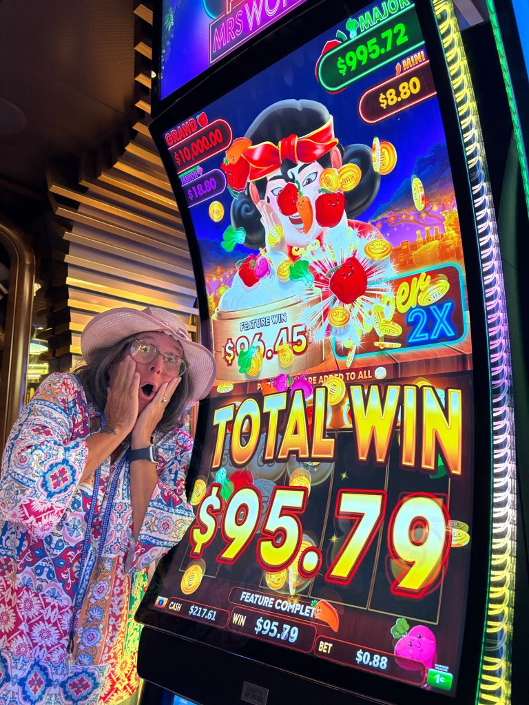 Brrrrrrr. Cold day at sea for the most part. Did some daytime slot machine play and won over and over again. I had a very lucky day but still would have preferred sitting by the pool soaking up the sun.