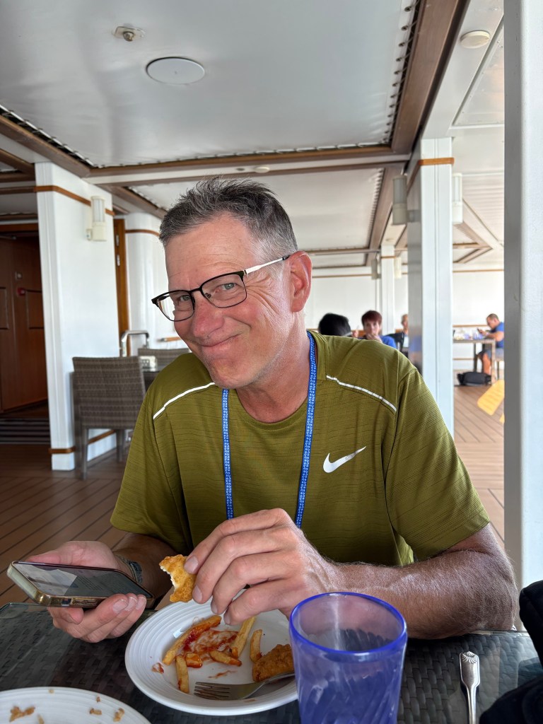We had a nice lunch and then sat on the deck to watch the boat sail away. They play the Love Boat theme on the ships horn when they leave which is fun. They also have every season of the Love Boat on the TV in the room.