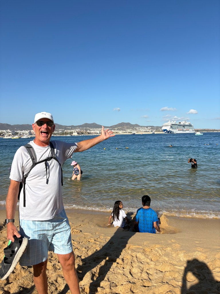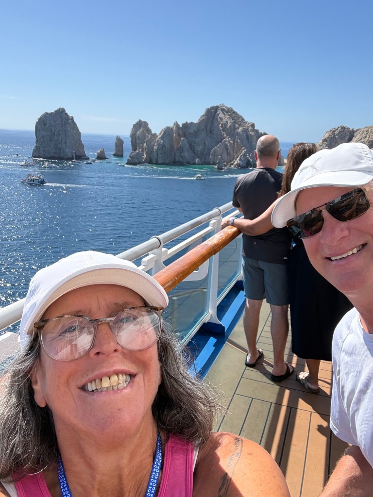 The Pacific Ocean ports in Mexico have been pretty good compared to the Atlantic Ocean Mexican Ports. A lot less hawking. In Cabo we had to take a smaller boat over to the port. There was a giant Marina with many yachts. They did a ticketing system to get off the ship so basically we just waited by the pool until all the ticketed people got off. We watched Lilo and Stich with an interruption announcement every 60 seconds to announce what ticket was boarding. This went on for hours. We finally got off and had a nice time walking among the yachts