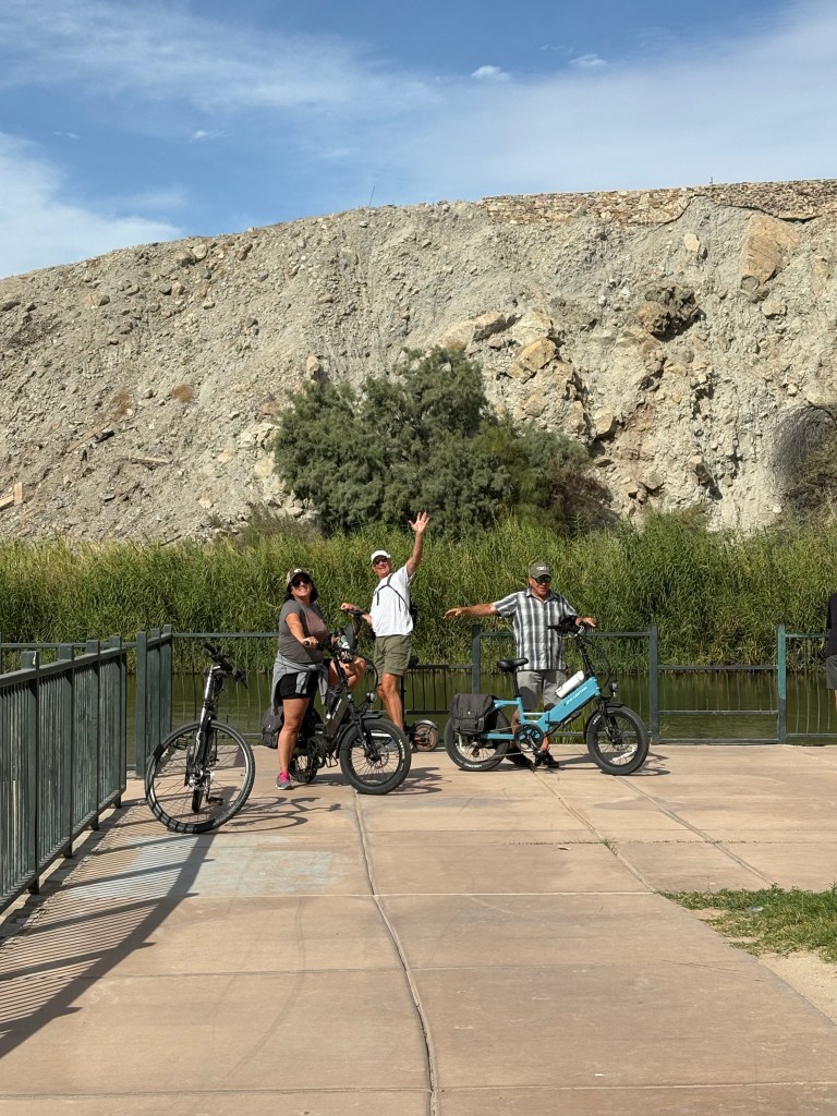 We headed further south to some BLM land just west of Yuma, Arizona. We found a nice spot in desert not too close to anyone else but also not too secluded to be afraid. The weather was awesome and we spent 6 days enjoying it. We drove into Yuma with the bikes and took a nice bike ride in a park with great bike trails all along the channels of water. They redirect a lot of the water from the Colorado River to bring it to all the farms. Yuma is the lettuce Capital of the world so they need that water.