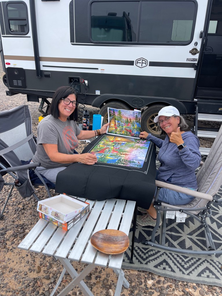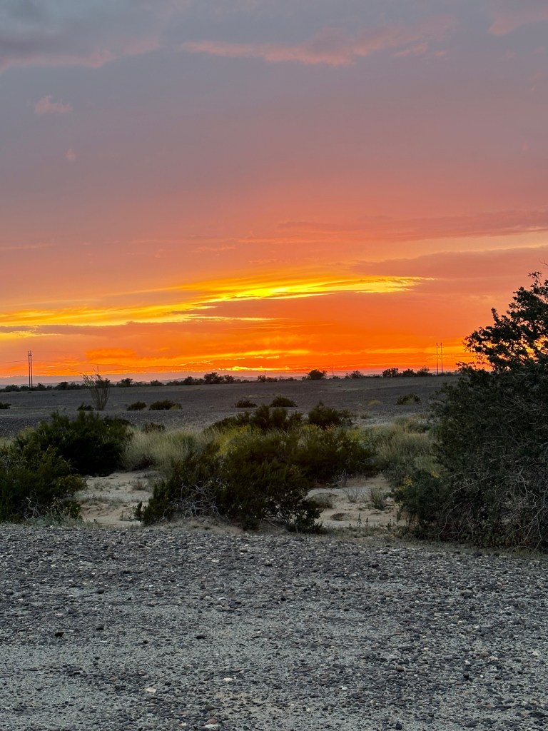The sunsets in this area have been amazing every night. The wind picks up at night so we’ve been watching movies in Barbara and Franks camper.