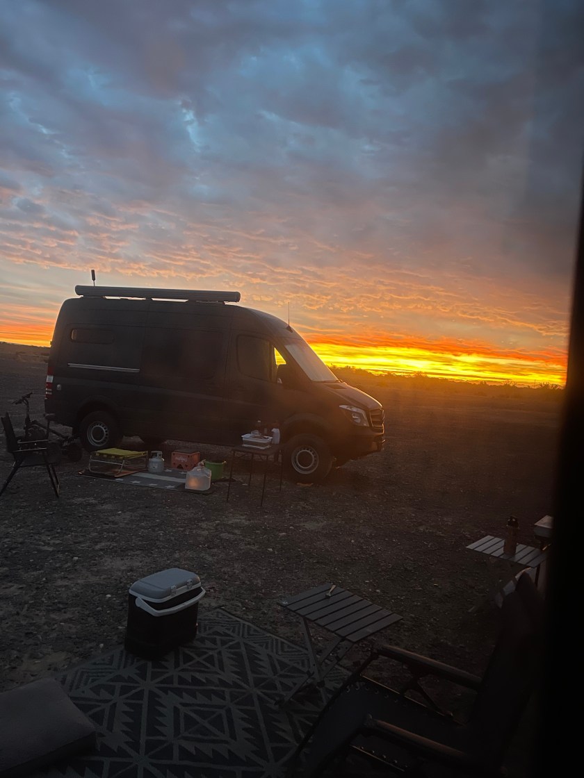 The sunsets in this area have been amazing every night. The wind picks up at night so we’ve been watching movies in Barbara and Franks camper.