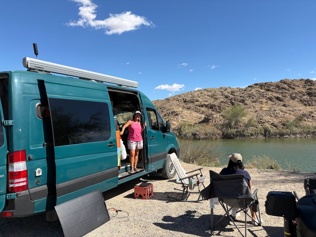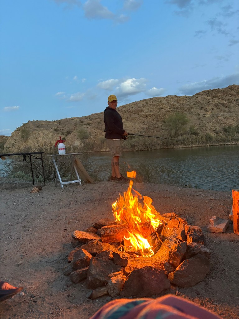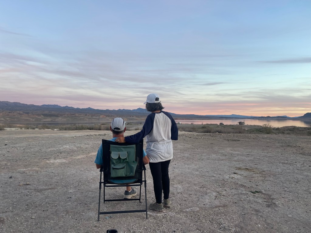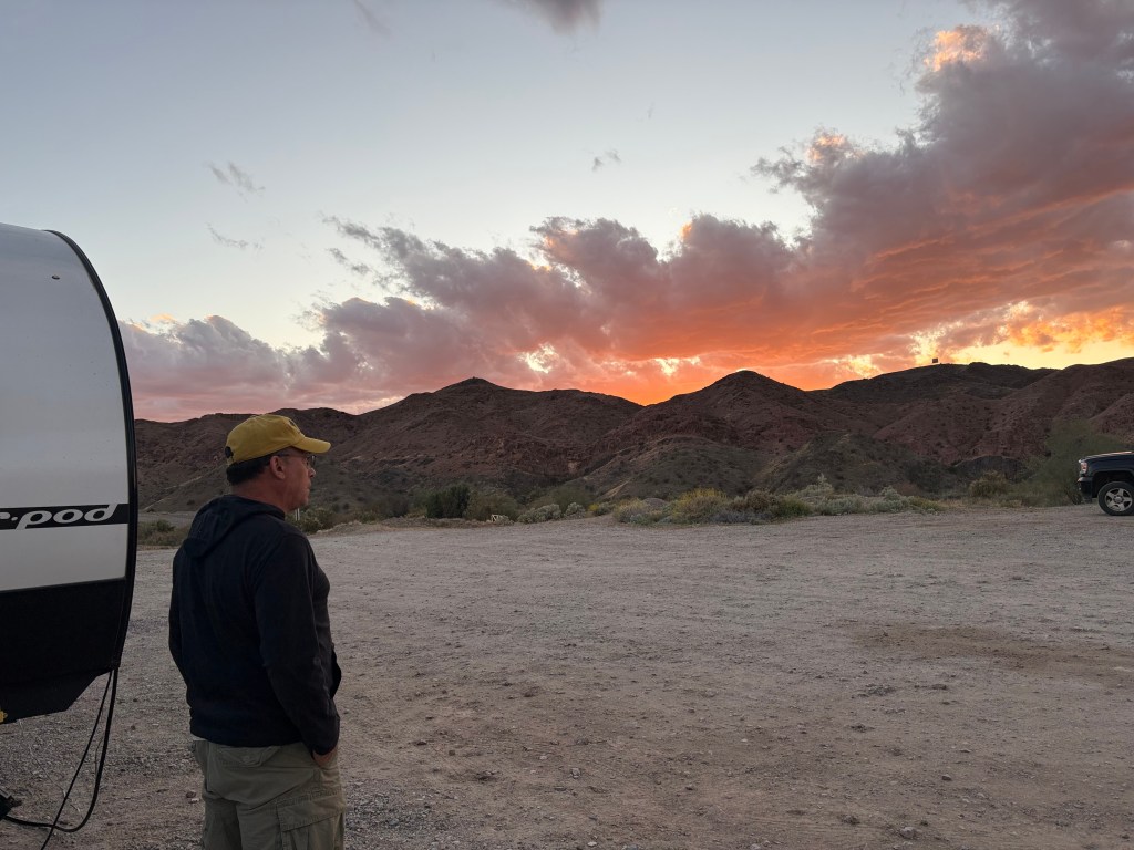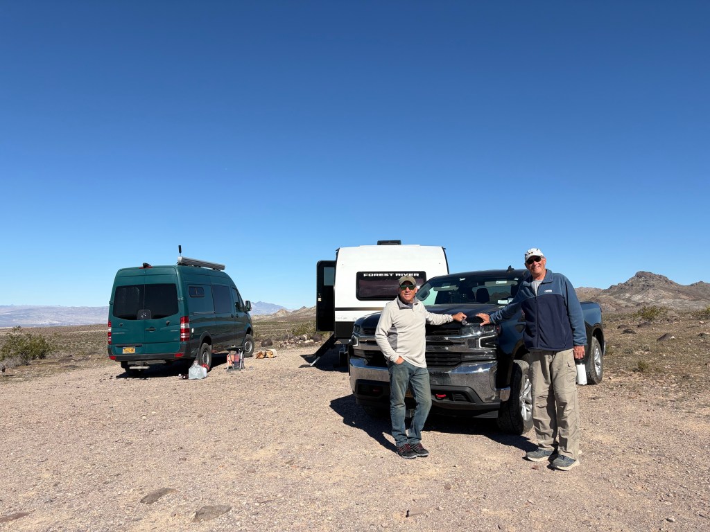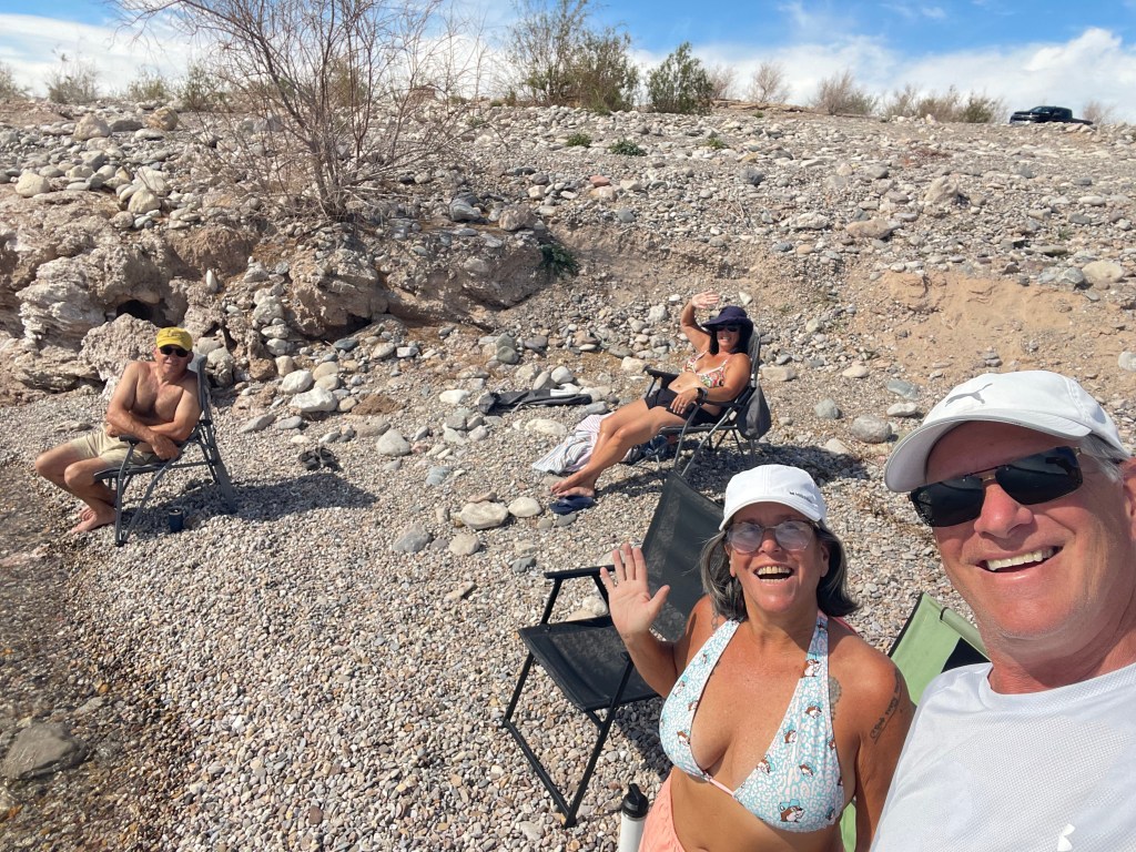We left the Rock Desert and headed to Yuma where we decided to camp for a couple of days at Mittry Lake. It’s a great BLM free camping spot but it can tend to get a little crowded and this trip in it was definitely crowded. While Frank and Barbara were taking care of water and dumping, Greg and I were driving around Mittry Lake in search of a decent camping spot and we definitely found a beauty right on the water.
